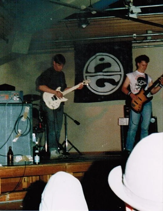 Nach dem Abitur 1991 haben wir alle unseren Zivildienst abgeleistet und geradlinig weitergeprobt und -gefeiert. Das regelmässige Zivi-Einkommen führte automatisch zu Verbesserungen am Equipment und so war mein zweiter Bass eine Hohner Jazz-Bass-Kopie, der war schon garnicht mehr schlecht. Ich habe ihn etliche Jahre gespielt und sogar noch mit stimmstabilen Mechaniken und guten PUs nachgerüstet.