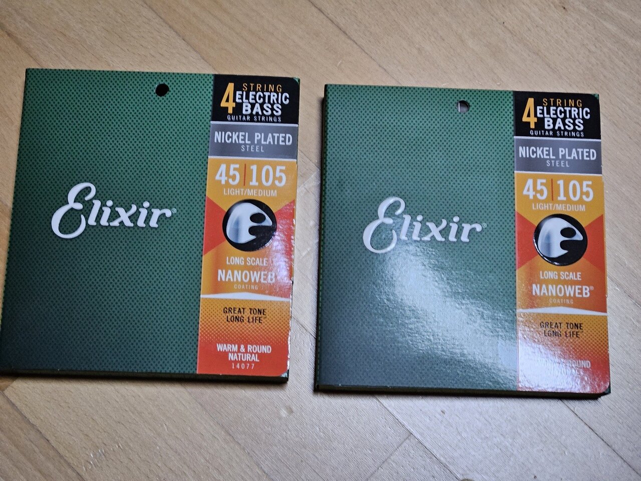 ich verkaufe zwei unbenutzte Sätze Bass-Saiten Elixir Nanoweb 45-105 Nickel. Mir gefällt das Spielgefühl nicht, hier im Forum gibt es sicher Kollegen, die diese Saiten mögen.