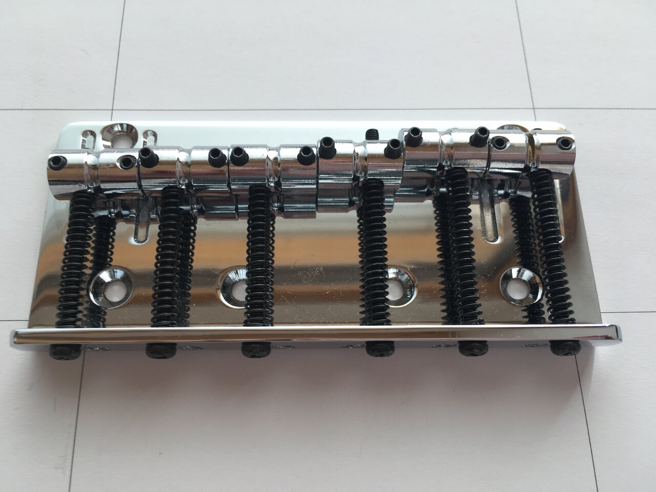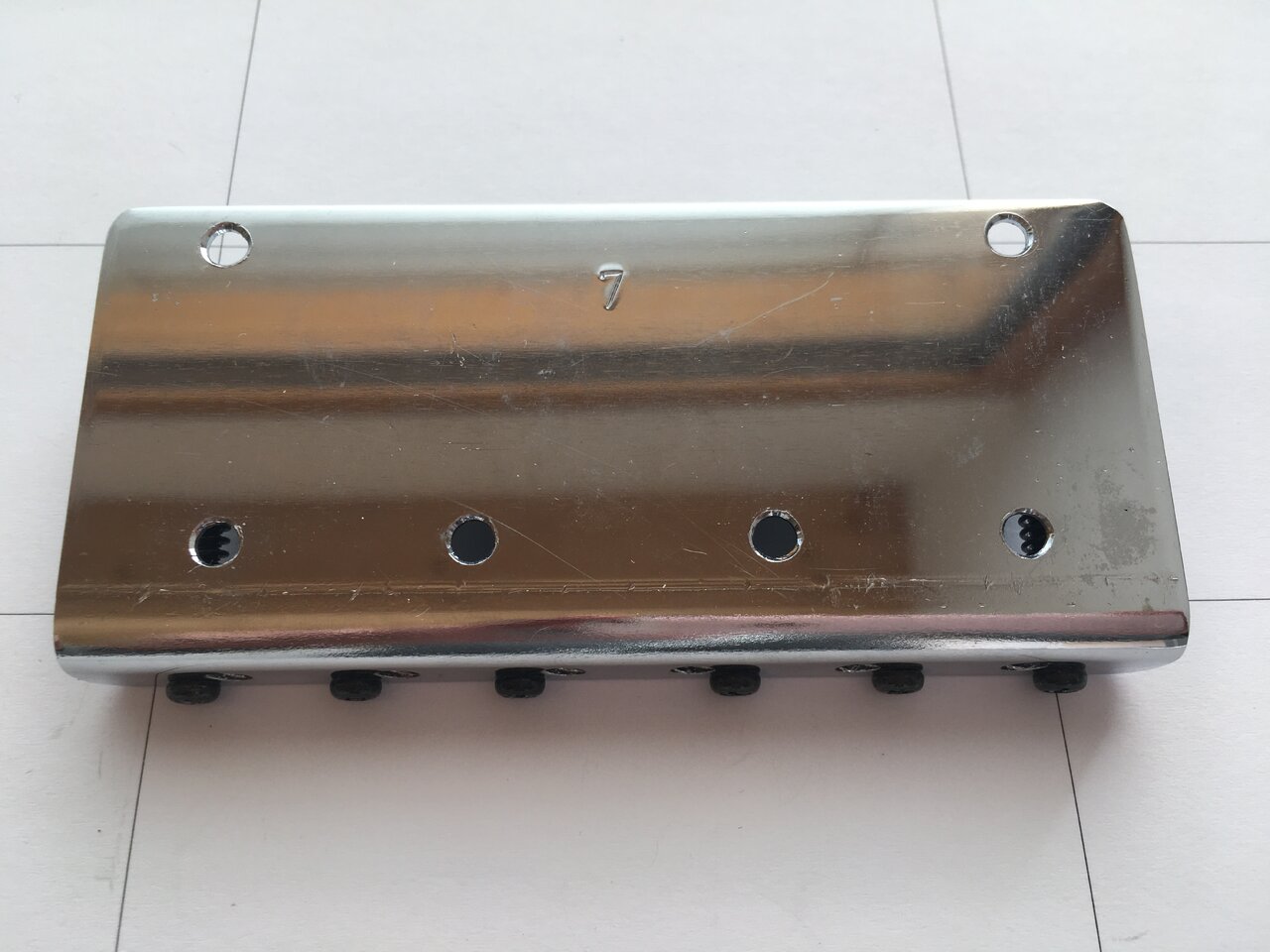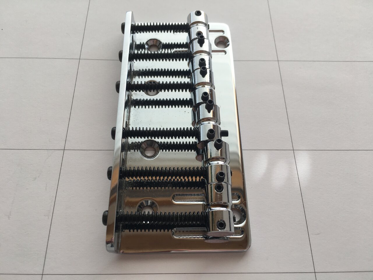 ABM 3506 vintage style 6-string bass bridge aus den 90ern. Massive vintage-style bridge, ein feinmechanischer Traum, 111 x 50mm, string spacing 17mm.