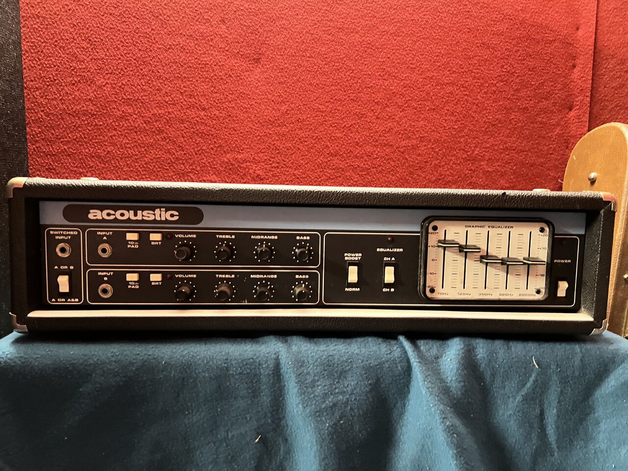 Zum Verkauf steht ein gebrauchter Bass Amp der Firma Acoustic Modell 320. Der Amp ist gebraucht, befindet sich aber in einem für sein Alter sehr gutem Zustand (vgl. Bilder) und funktioniert ohne Probleme. Er hat zwei Kanäle (A,und einen Equalizer, welche über den Original Acoustic Fußschalter angewählt werden können.