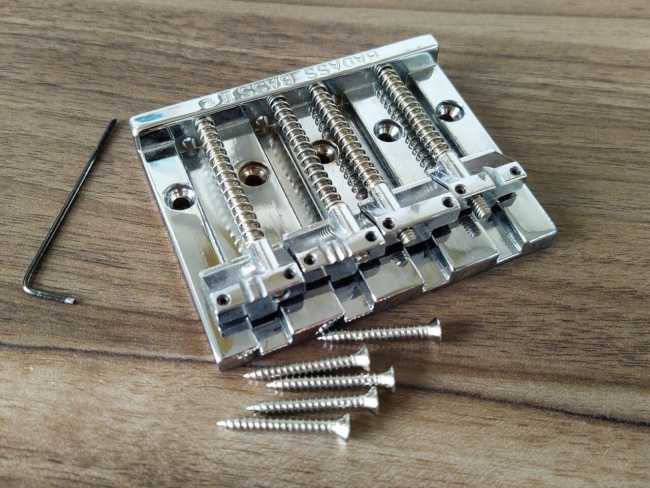 Zum Verkauf steht eine alte, bereits gekerbte Bad Ass II Bass Brücke die sich noch in meiner Teilekiste befunden hat. Das Lochbild passt auf alle Fender oder Squier mit 5 Schrauben.