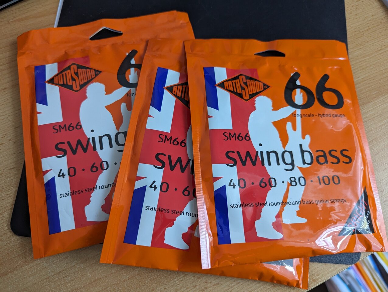 Drei Sätze Rotosound SM66 040-100 stainless Steel roundwound, je 18€