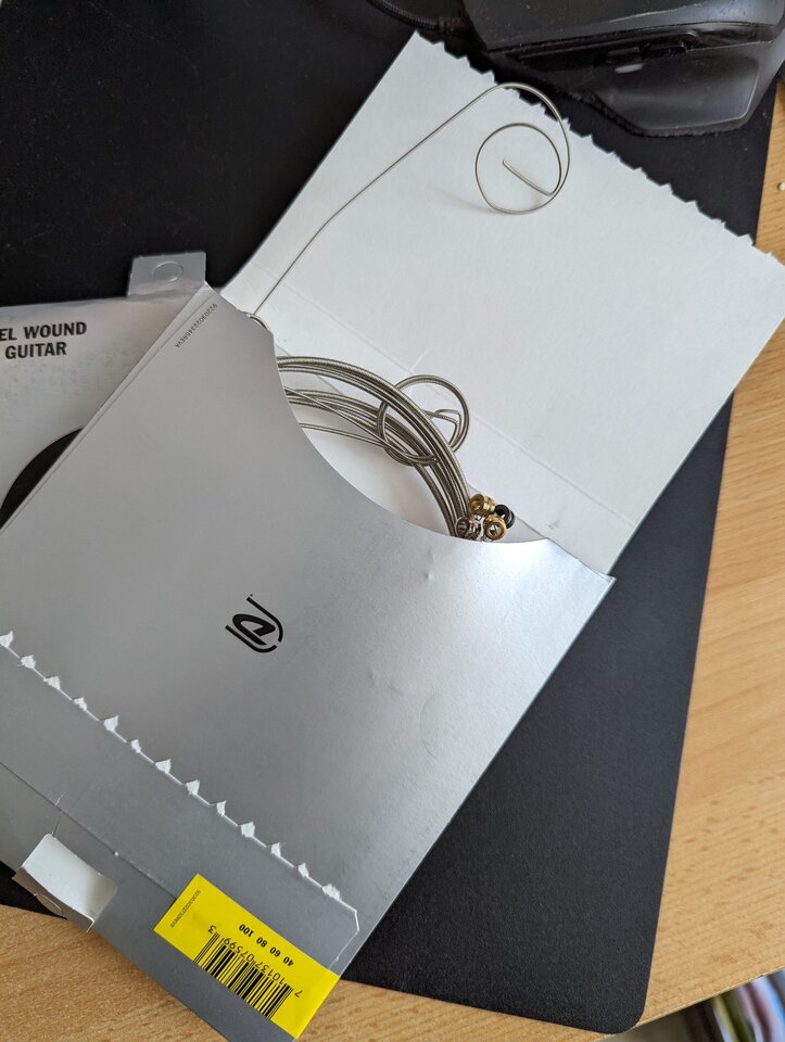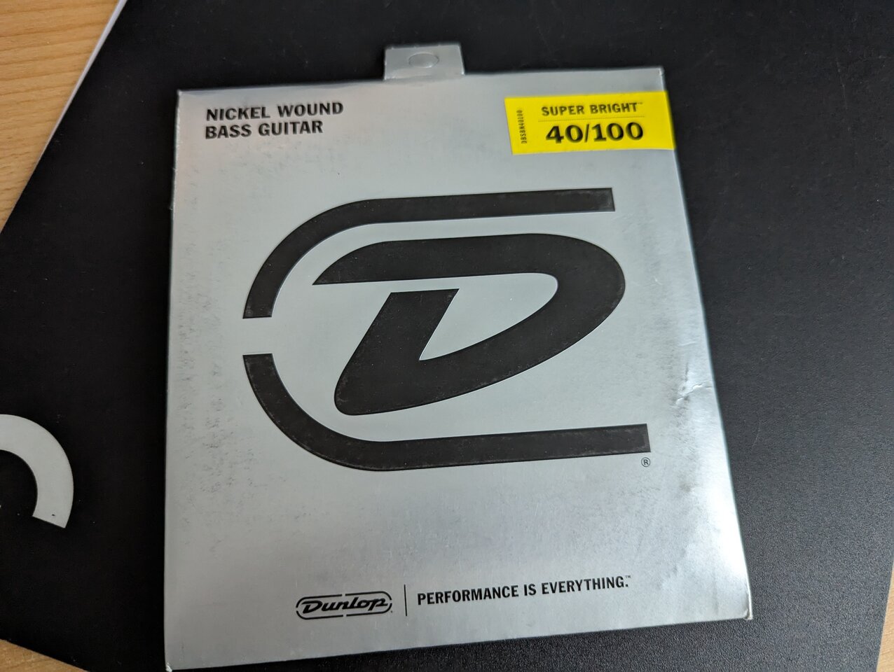 inklusive zweiter Packung angespielter Saiten geschenkt, aufgezogen auf einem Jazz für 10 Minuten, glaube ich.