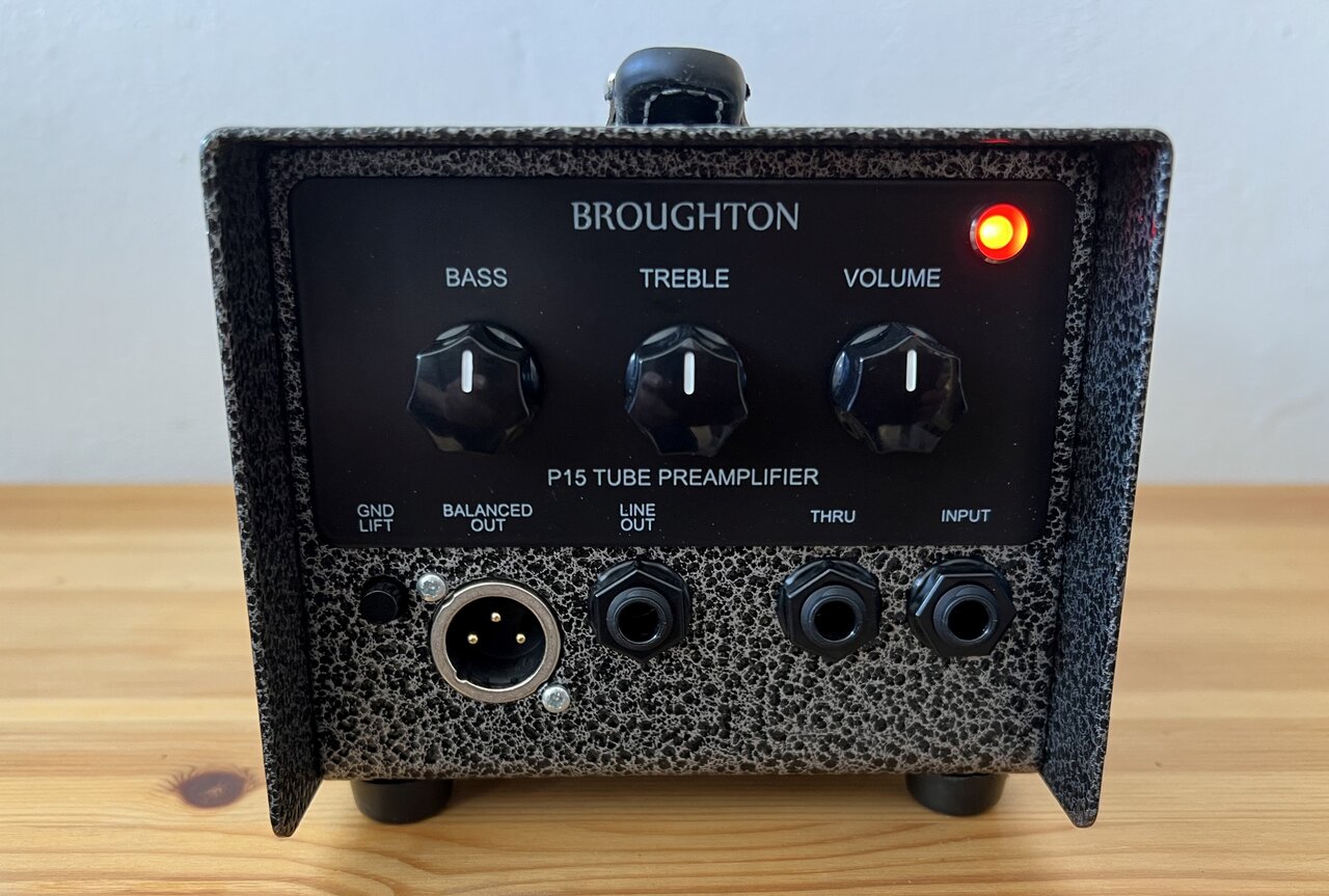 Ich verkaufe meinen Broughton P15 (Tube Preamp DI Box). Das Gehäuse ist noch die ältere Version (2020) dadurch sind die Potis und Schalter m.E. besser geschützt. Der P15 basiert auf der Vorverstärkerstufe des Ampeg B15 mit einer 6SL7-Röhre und dem entsprechenden Baxandall Tonestack. Das Gerät funktioniert einwandfrei und ist in einem sehr guten Zustand. Aus NR-Heimstudio.