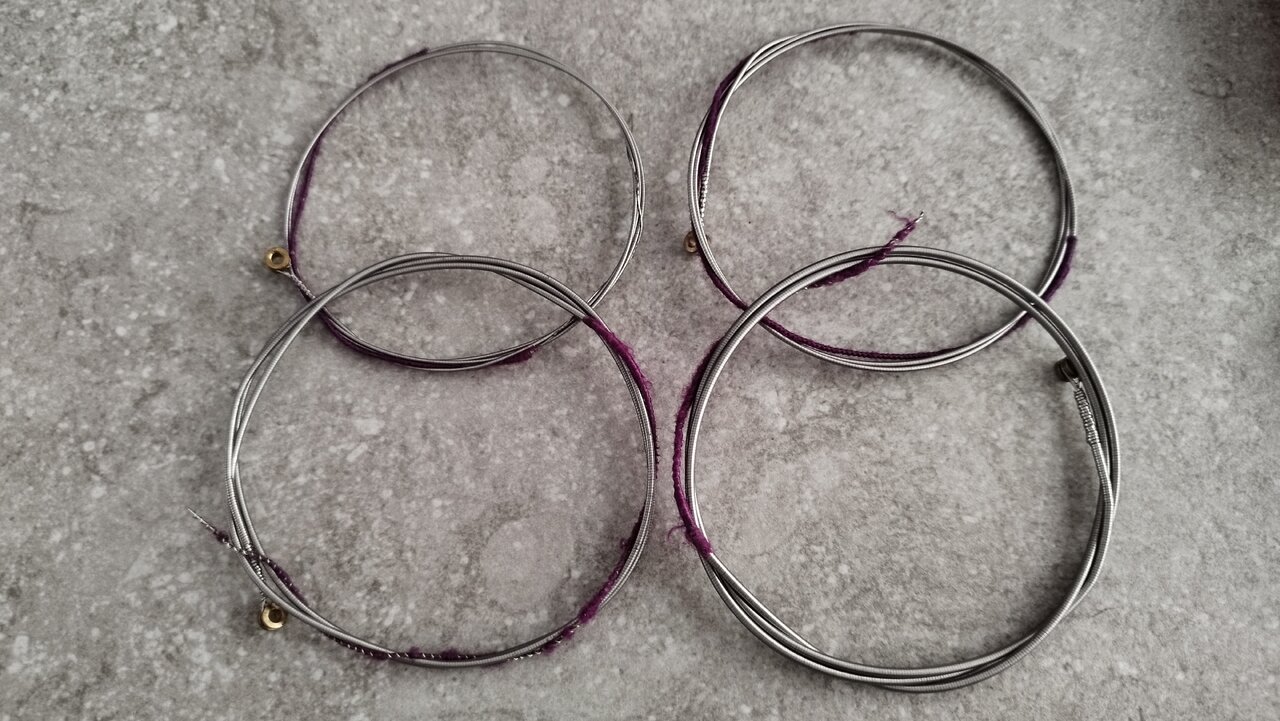 Saiten sind gebraucht aber ok, keine Brüche, stimmstabil.