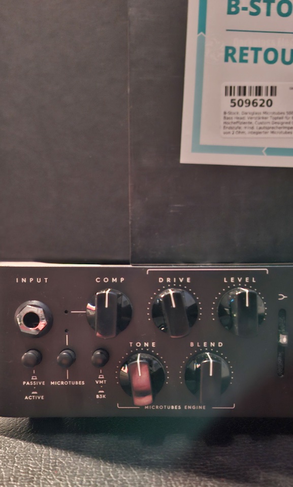 Darkglass Microtubes 500v2 (OVP; 610 EUR) - als B-Ware gekauft, keinerlei Gebrauchsspuren, voll funktionsfähig (Umschalter inklusive): https://www.thomann.de/de/darkglass_microtubes_500_v2_bass_head.htm