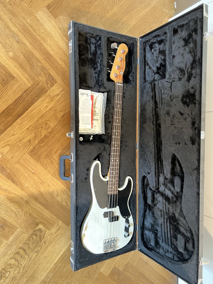 Zum Verkauf steht ein gebrauchter Precision Bass der Firma Fender. Es handelt sich um einen Mike Dirnt Precision Bass in der Farbe white in der Roadworn Variante . Inklusive Fender Case und dem zugehörigen Case Candy. Der Bass ist gebraucht und funktioniert einwandfrei.