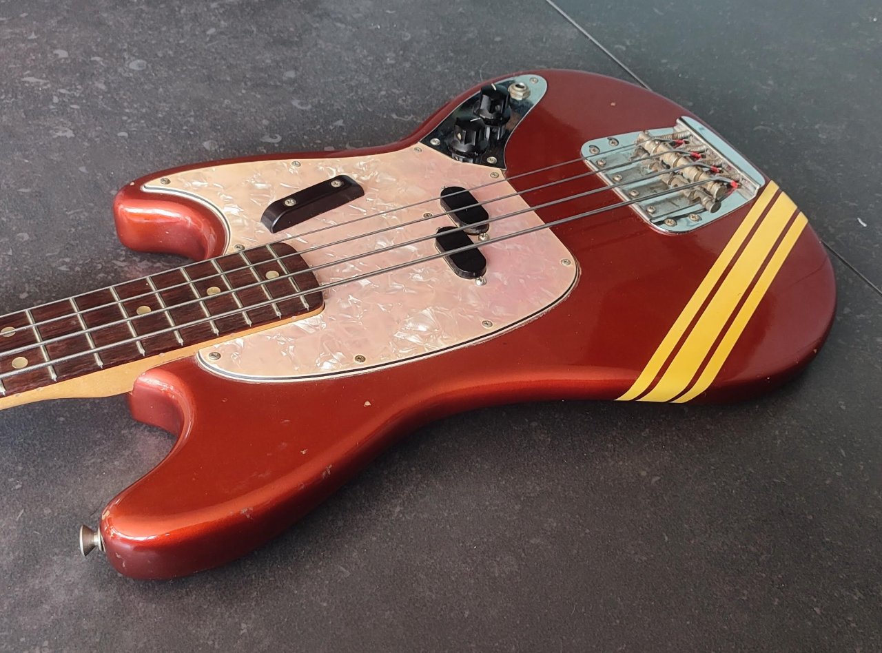 Fender Mustang Bass 1970 competition red (matching headstock) - Fender Mustang Bass 1970 competition red (matching headstock)