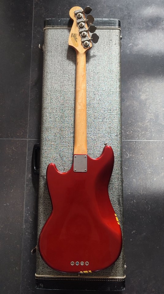 For sale is my great vintage ’70 Mustang Bass in a sought after competition red finish with matching headstock.