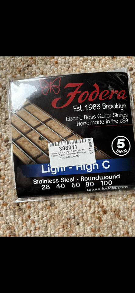 Verkaufe einen Nagelneuen Satz Fodera Saiten. Stainless Steel light High C. Neupreis 49€