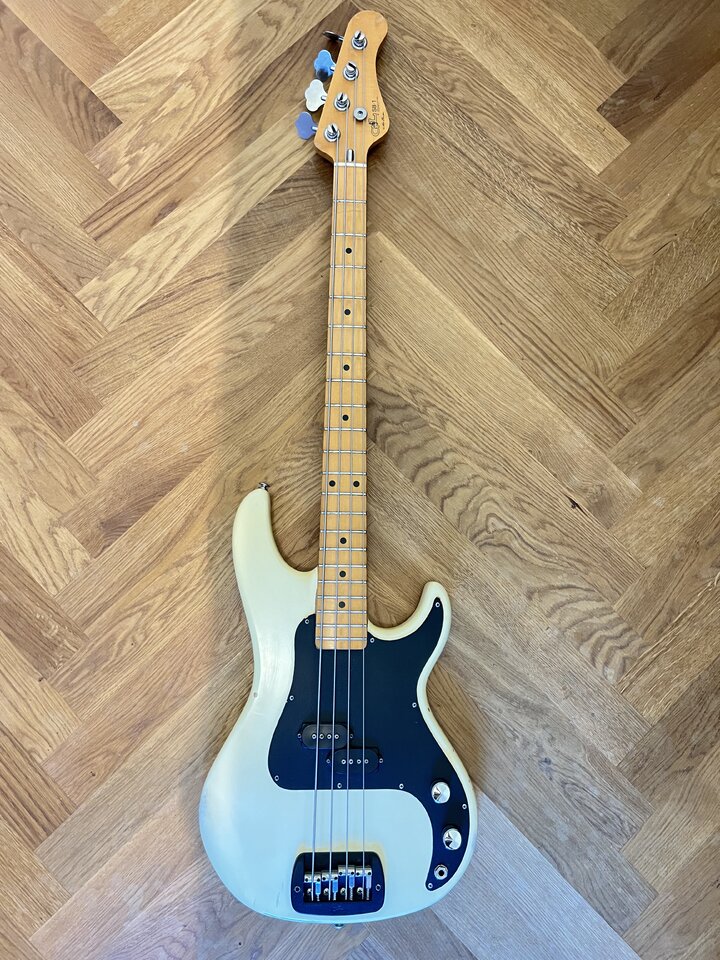 Zum Verkauf steht ein gebrauchter Bass der Firma G&L. Es handelt sich um das Modell SB-1 mit dem alten Headstock, der mehr an Fender erinnert. Das Baujahr dürfte ca. 1985 sein. Er befindet sich meiner Meinung nach im Originalzustand, einizg die Potiknöpfe wurden getauscht. Es handelt sich um Original G&L Potiknöpfe aus Alu. Wie man den Bildern entnehmen kann, hat der Bass schon einiges erlebt, man würde den Zustand heute wahrscheinlich als Roadworn bezeichnen. Der...