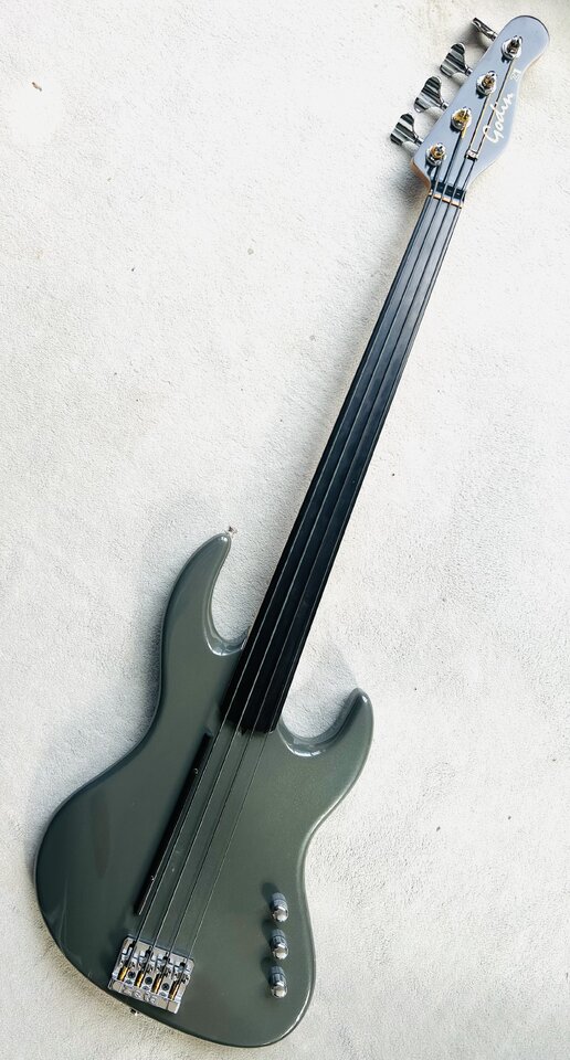 Ich finde keine Bassgitarre kommt im Sound näher an einen Kontrabass ran. Godin schrieb: “limewood body, a maple neck, an ebony fretboard and a Zeta piezo loaded bridge.”