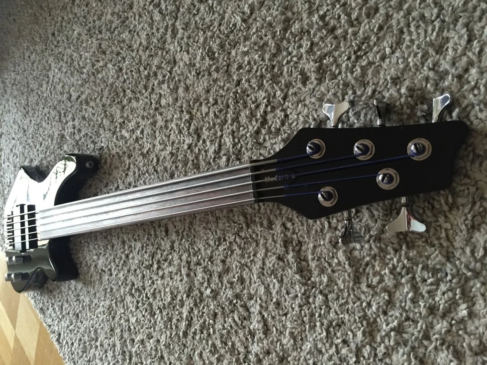 Dieser günstige Fretlessbass ist klanglich völlig in Ordnung und perfekt zum Kennenlernen des Fretless-Spiels geeignet. Da ich mir nun einen anderen Fretless Bass gekauft habe muss dieser hier gehen. Der Bass steht in Köln und Versand ist möglich.
