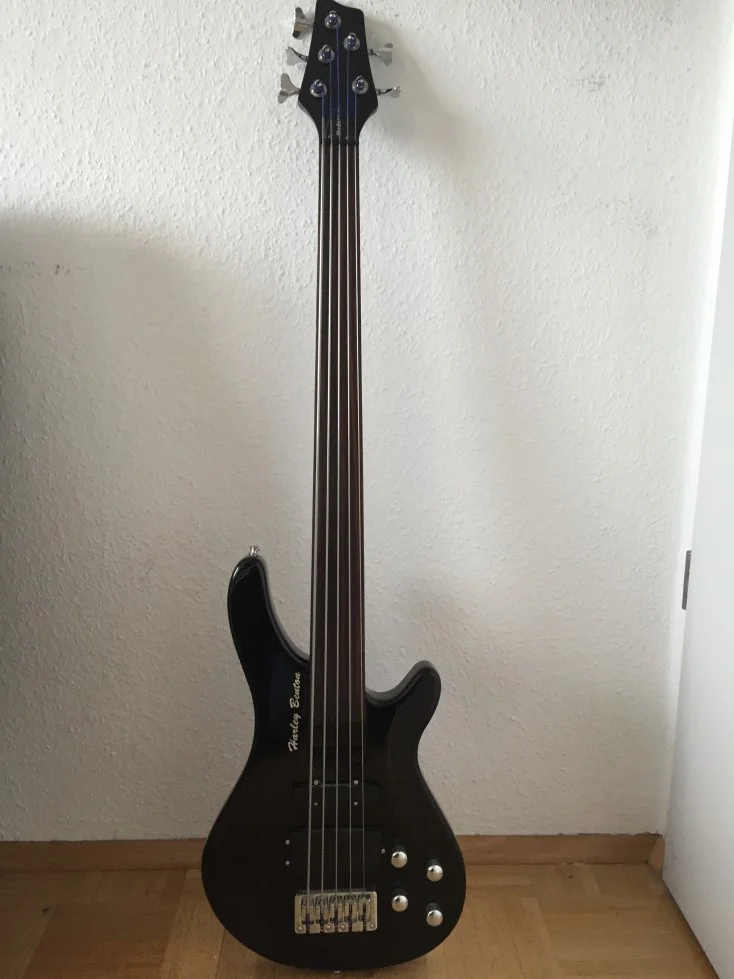 biete hier meinen gebrauchten bundlosen Harley Benton B-500FL TBK Fretless Bass in der Farbe schwarz an. Der Bass hat keine Bühne gesehen und ich habe ihn nur zu Hause gespielt. Entsprechend gut sieht er aus und nur minimale Spielspuren.