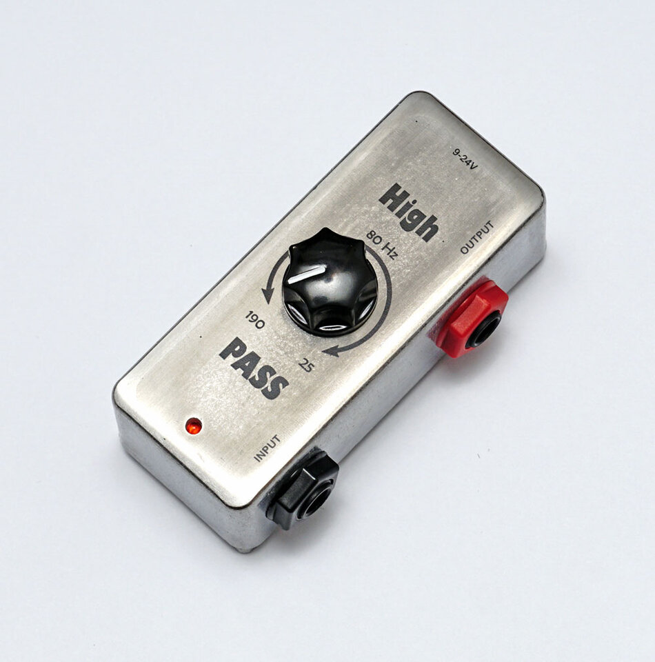 Regelbares High-Pass Filter zweiter Ordnung (-12dB/Okt.). Die Grenzfrequenz kann stufenlos zwischen 25 Hz und 190 Hz eingestellt werden.