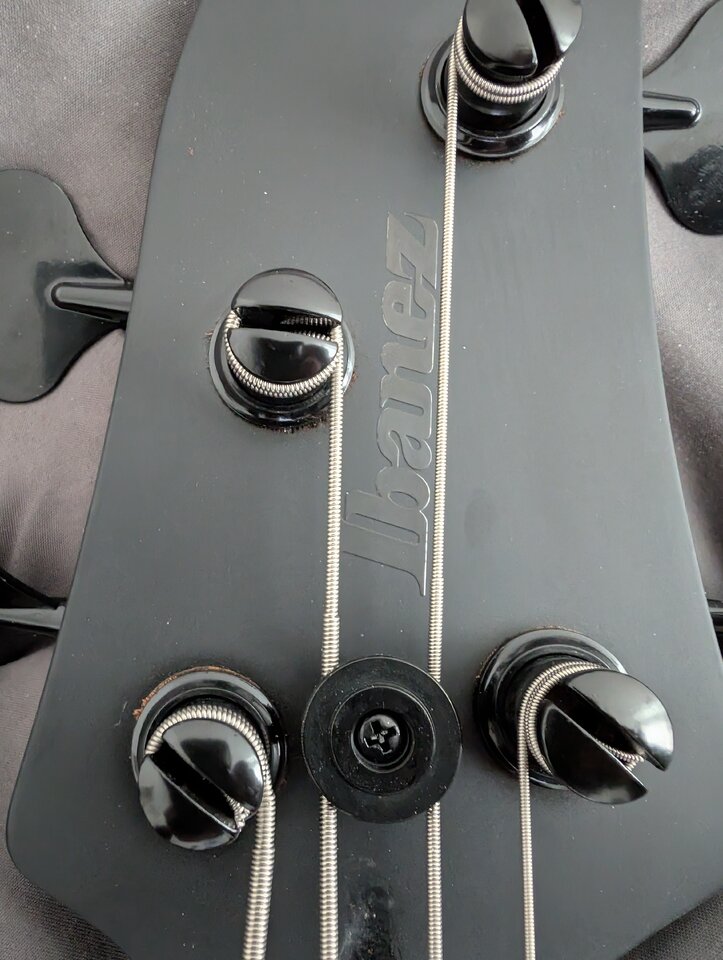 Das Flat Black Finish kommt sehr cool rüber. Auch das Ibanez-Logo ist in Schwarz gehalten.
