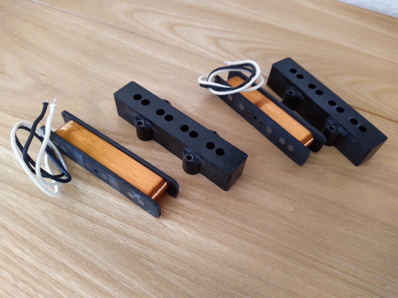 Die Pickups liefern einen klasse Punch ohne dabei die Bassanteile im Ton zu verlieren. Die Kappen und Schrauben haben ein leichtes Relic bekommen, so dass sie auch optisch zu meinem Bass gepasst haben.
