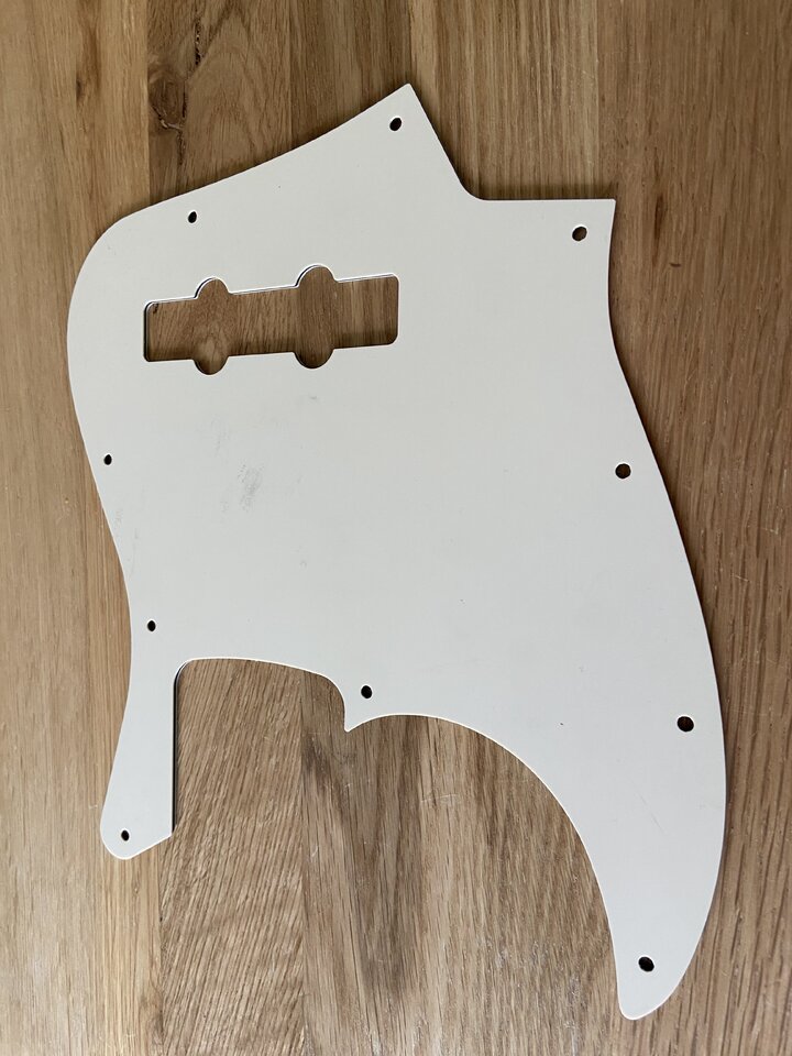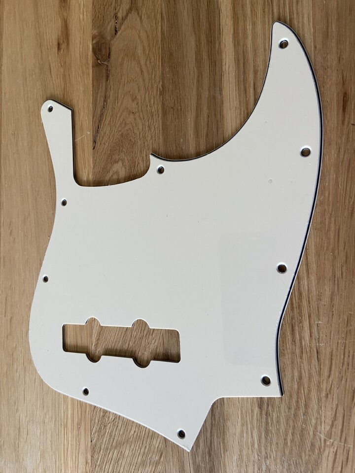 zum Verkauf steht diesmal ein 10-Hole JB-Pickguard in Cremeweiß, 3-Lagig Creme/Schwarz/Creme, in gutem, neuwertigem Zustand. Noch nie verbaut, die Schutzfolie ist noch aufgeklebt. Passt auf AM-Standard Bässe, ohne Trussrod-Notch.