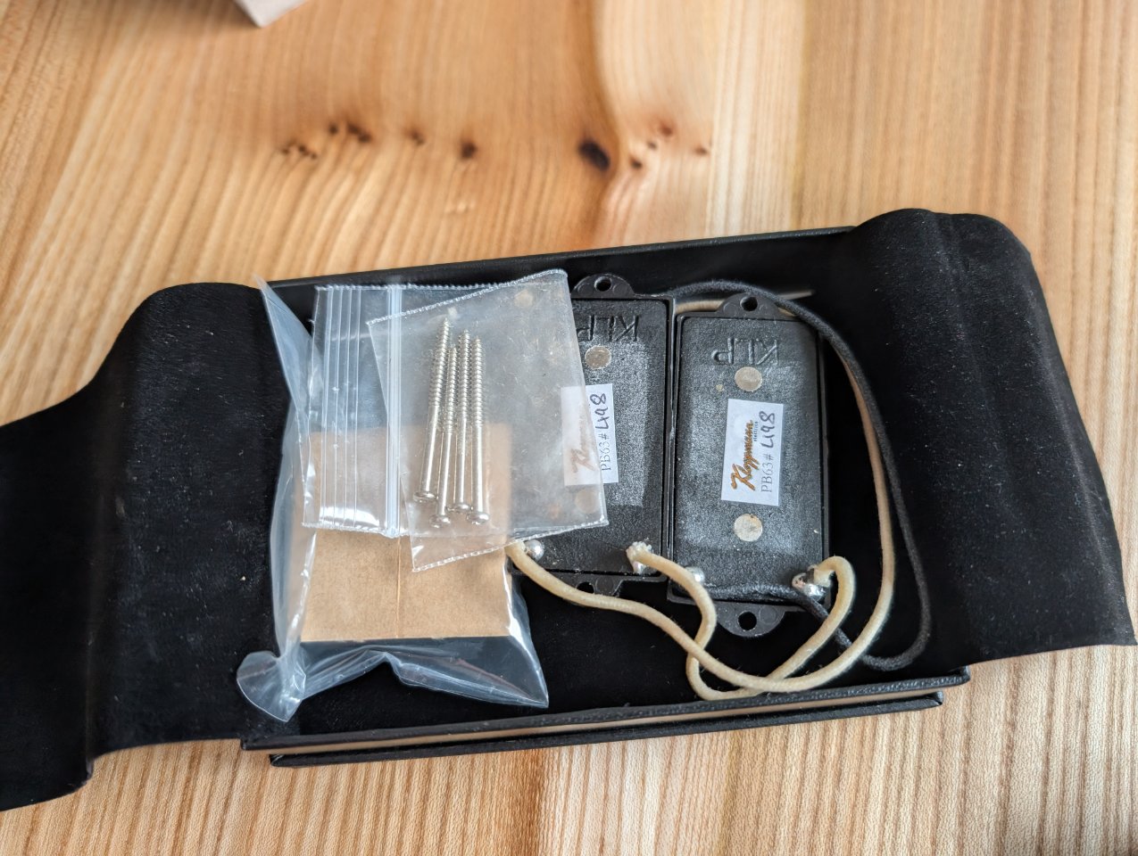 Ich denke zu diesem Pickup muss man nicht viel sagen. Den PB63 habe ich - wie man auf den Fotos erkennen kann - 2023 selber bei Kloppmann gekauft. Aus dem Mitgelieferten Orange Drop Kondensator, CTS Potis, einer Switchcraft Buchse und stoffummantelten...