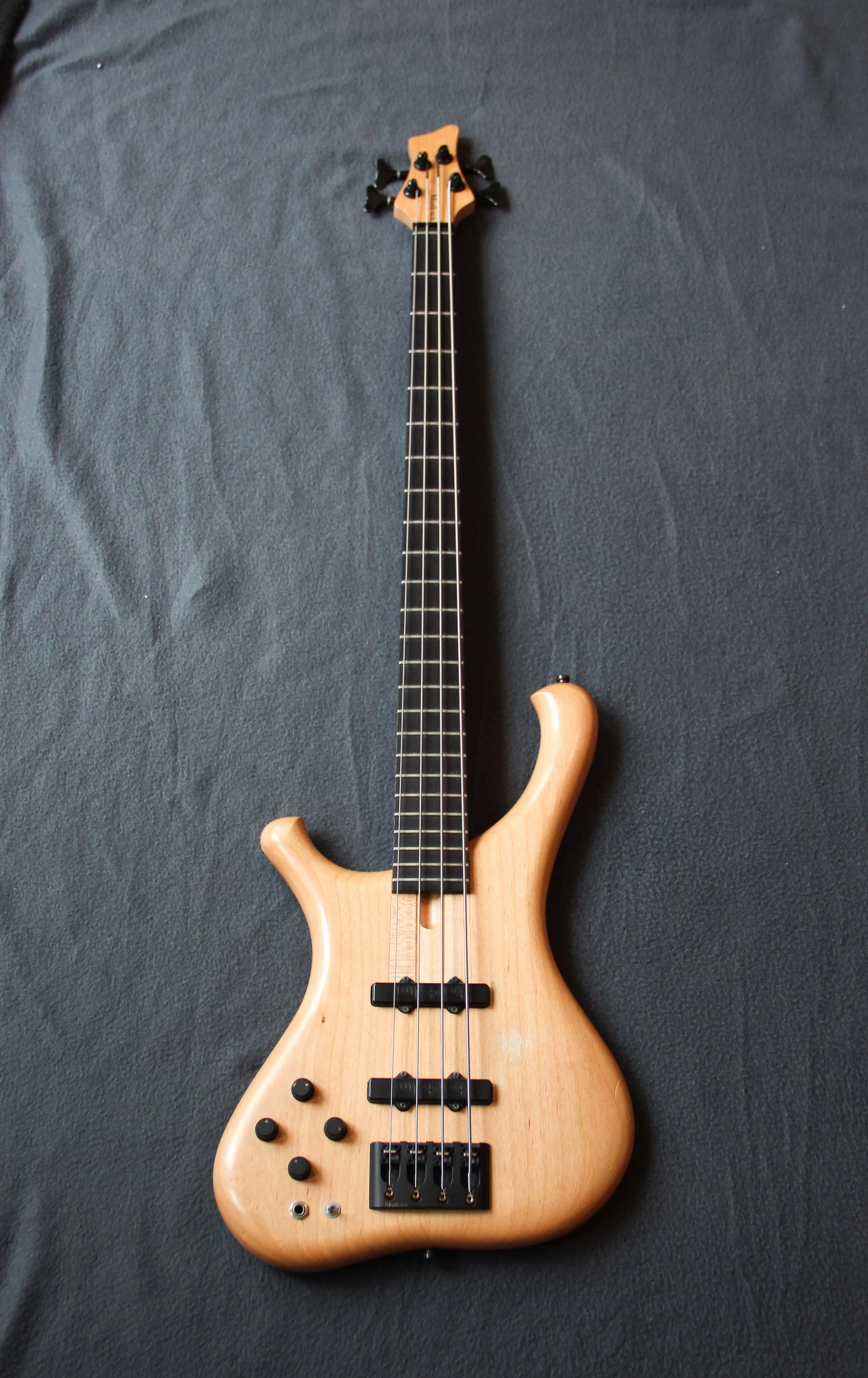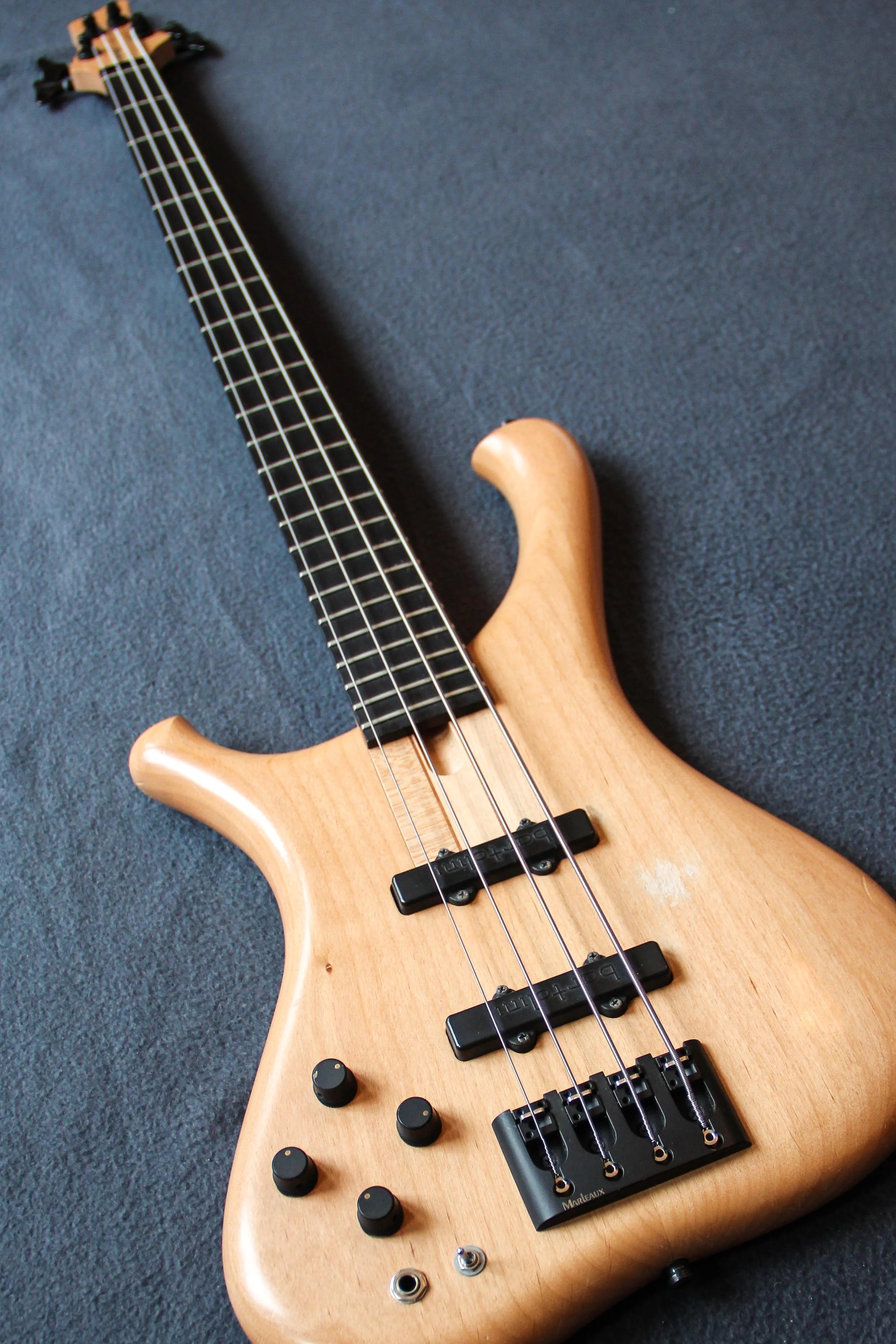 I am selling my unique 4-String of the German Luthier Marleaux. It has an alder body and a maple neck with three walnut stripes and dark palisander fretboard. Equipped with two Bartolini J-PUs and an active/passive 2-Band EQ.