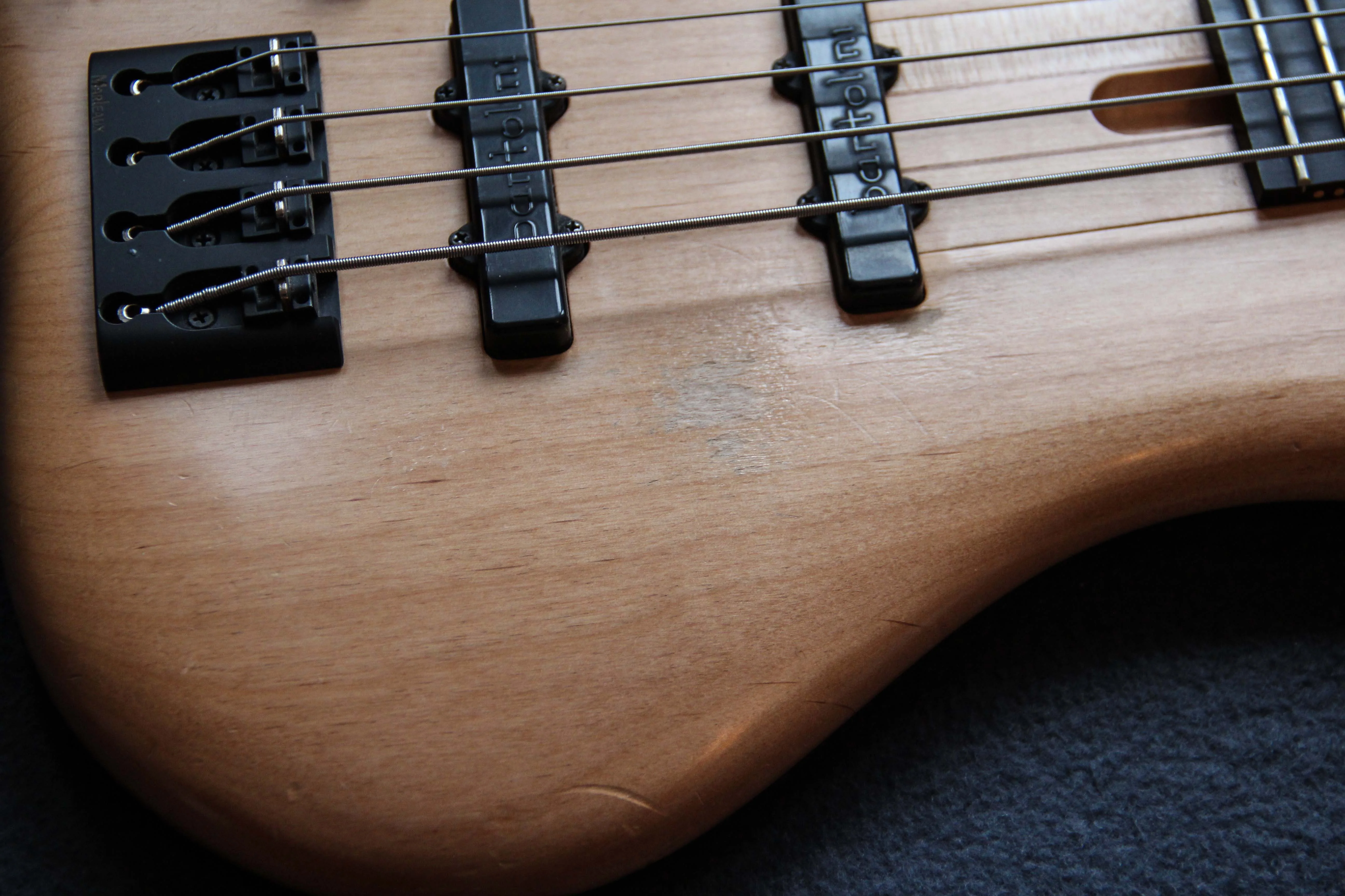 Ich habe den Bass viel auf der Bühne und im Studio im Einsatz gehabt - das weiche Erlenholz hat dementsprechend einige Gebrauchsspuren und Kratzer. Nichts was den Sound oder das Spielgefühl des Basses beeinträchtigen würde. Der Hals ist gerade und die Bünde haben (wenn überhaupt) minimale Abnutzungsspuren.