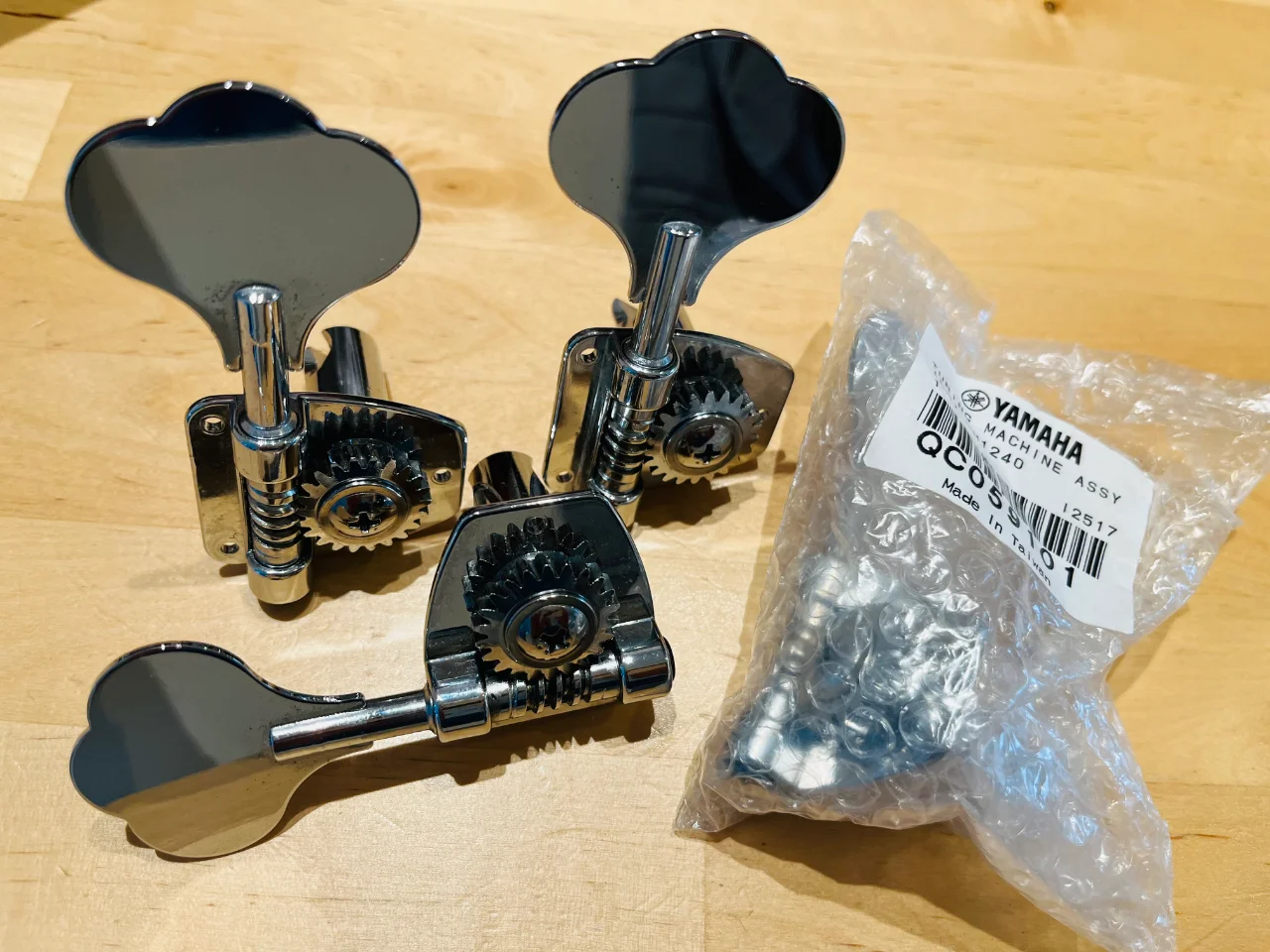 biete 4 Mechaniken (Chrome), passend für Yamaha BB 414, 614, 424, oder die entsprechenden 5-Saiter. Drei sind gebraucht, aber unbeschädigt und in gutem Zustand, eine ist neu und OVP. Kommen ohne Buchsen und Schrauben! Versand nur als Set, nicht einzeln. Festpreis inklusive Versand per Hermes.
