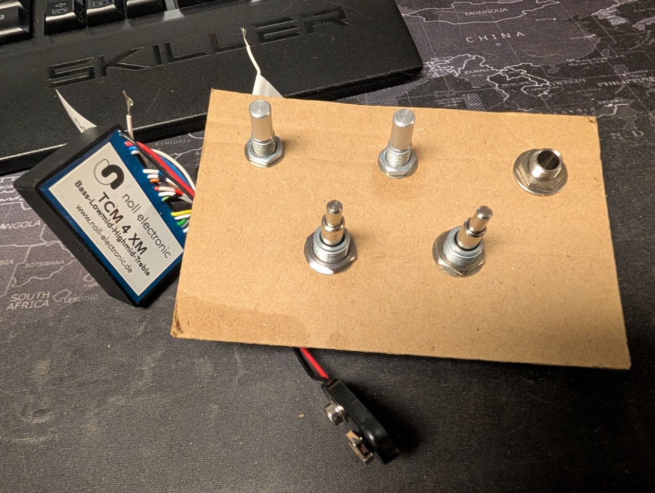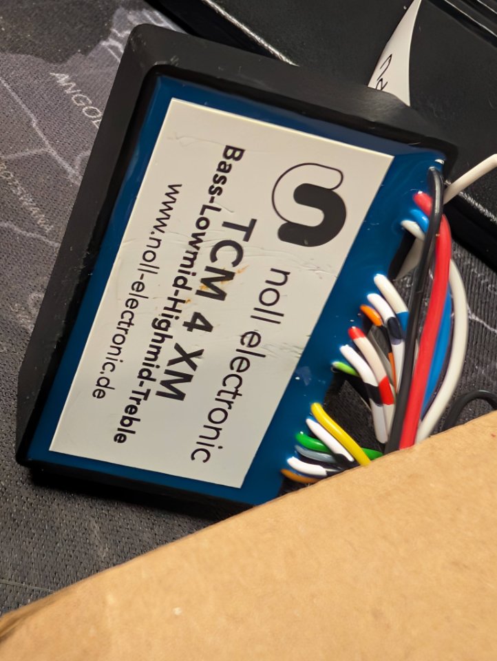 Angeboten wird eine Noll TCM 4XM Bass-Elektronik mit 4-Band EQ und 4 Potis (Volume, Balance, Bass+Höhen gestacked, Tiefmitten+Hochmitten gestacked). Neupreis um die 205€