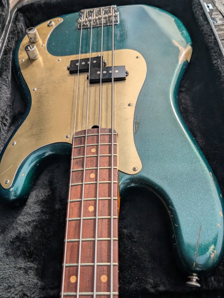 Hi , For Sale a great p Bass , im going to regret this , british racing Green relic alder Body , Madagaskar Rosewood , light weight,