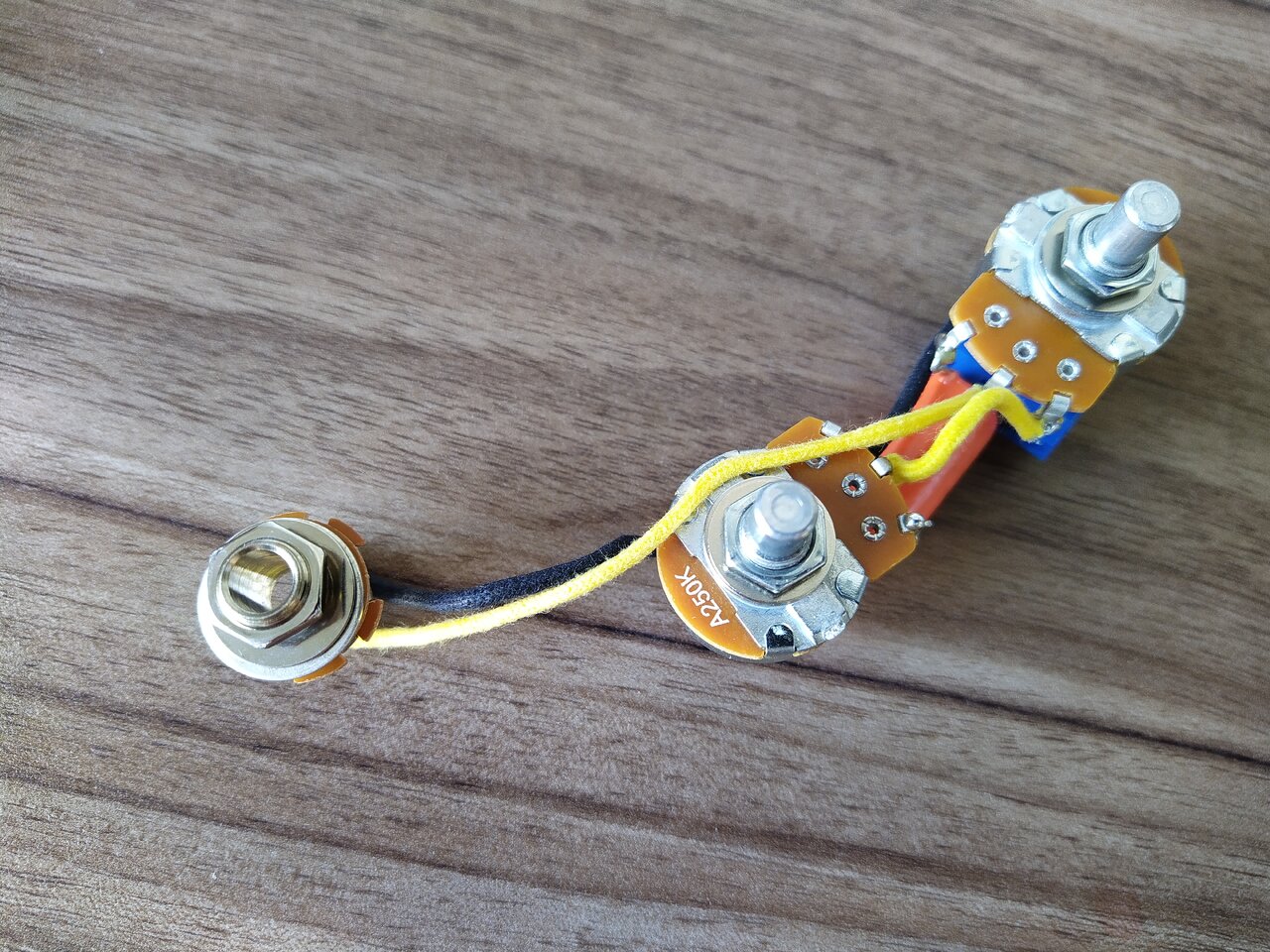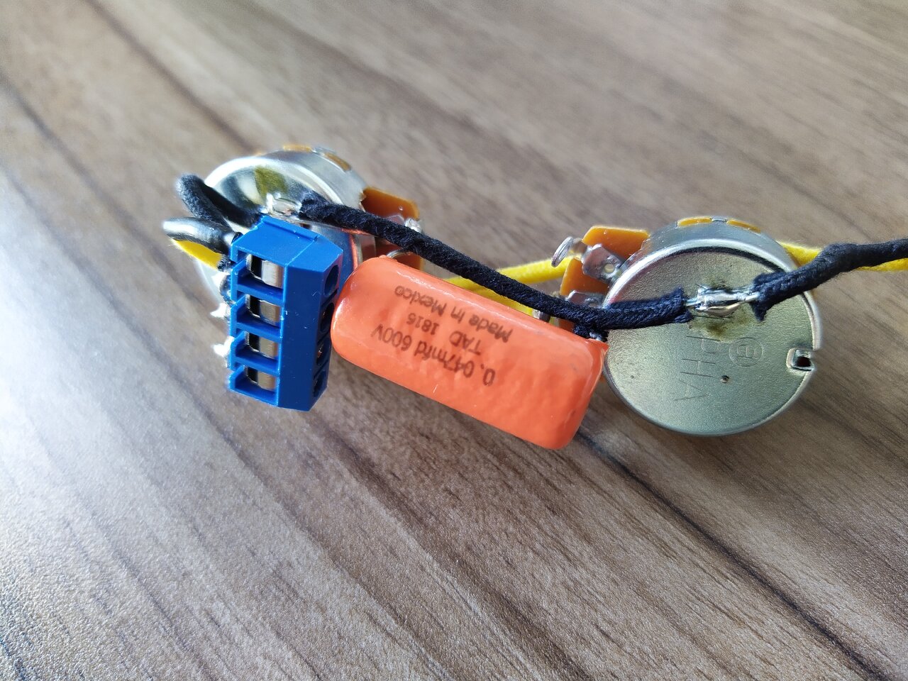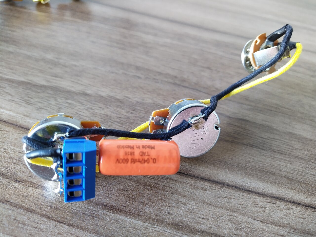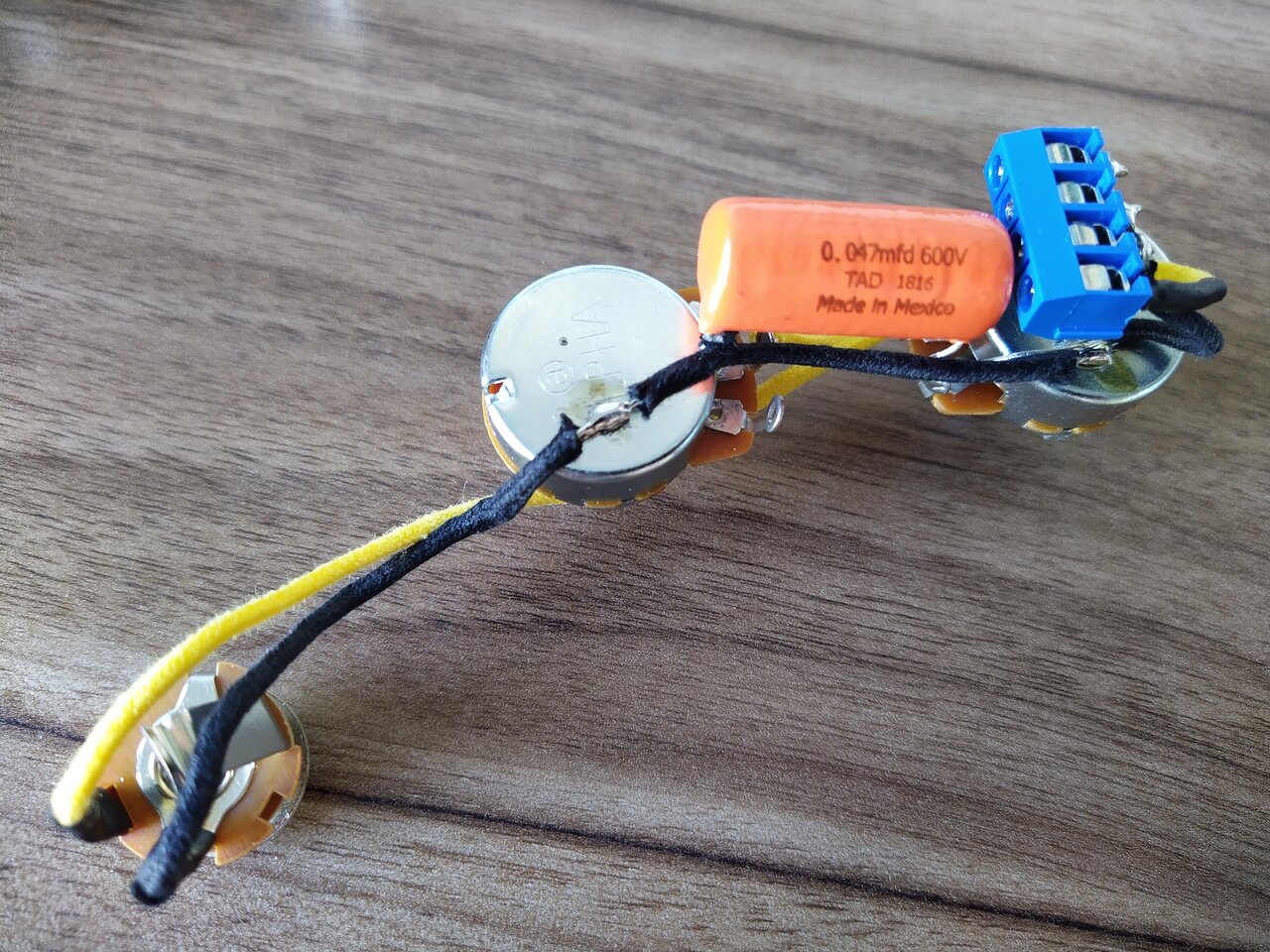Verkaufe diese komplett verdrahtete Precision Bass Elektrik mit Schraubklemmen, so dass nicht mehr gelötet werden muss. Einfach die Pickup-Kabel und das Masse-Kabel von der Brücke anschrauben und loslegen.