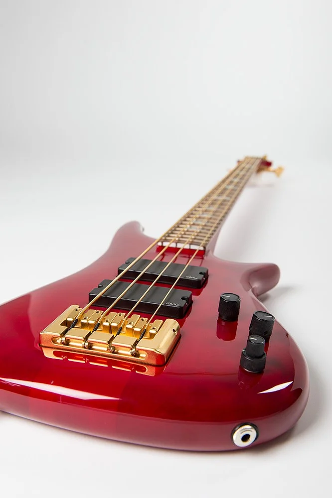 Ausgestattet ist der Bass mit einer 18 Volt Elektronik und EMG Pickups, die Saiten sind Optima Gold Strings (passt am besten für die goldene Hardware). Die Fotos sind von einem befreundeten Fotografen gemacht worden, ich wollte nicht den schönen Bass durch schnöde Handyfotos verschandeln. Sie sind nur wenig bearbeitet und vor allem nicht retuschiert!!!