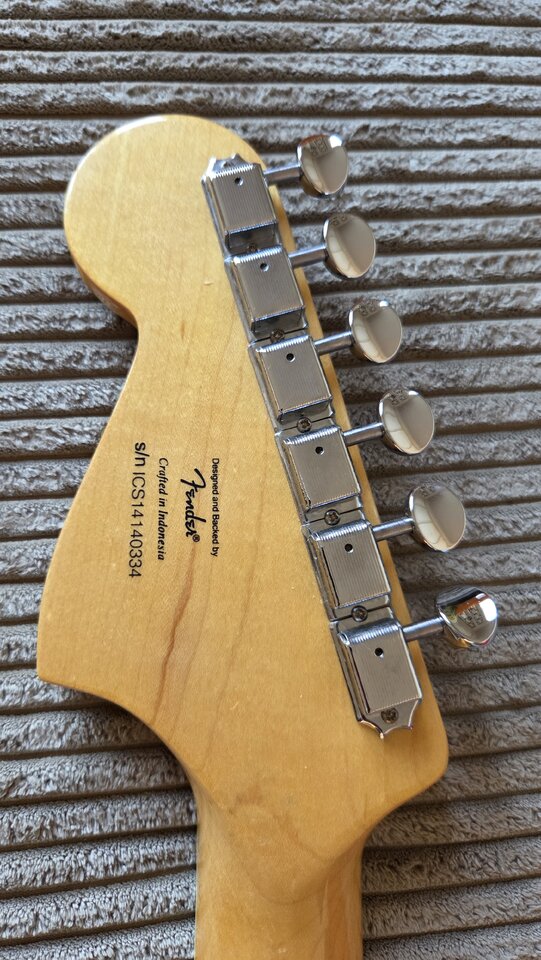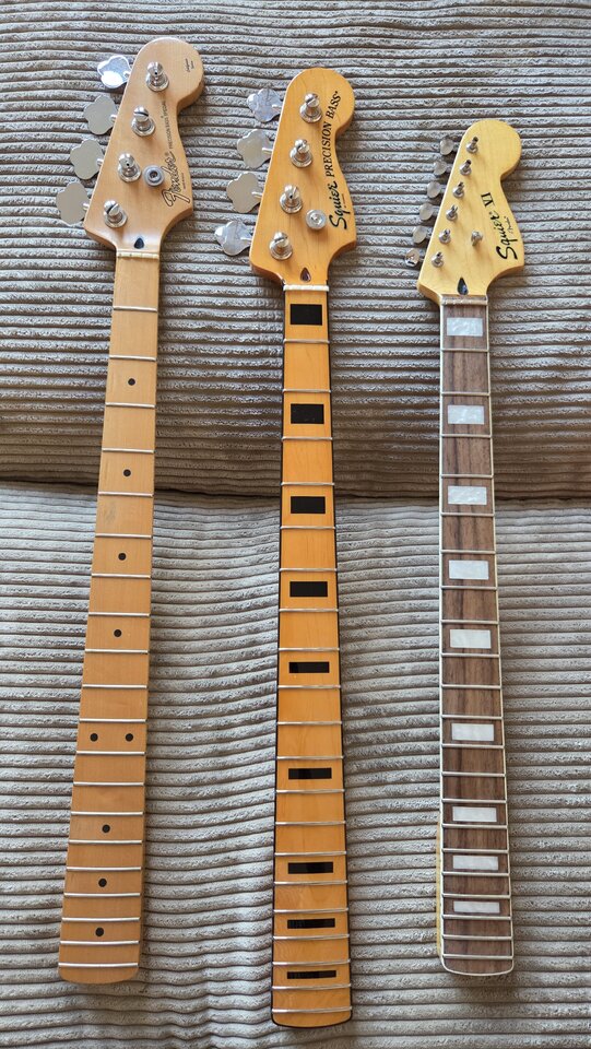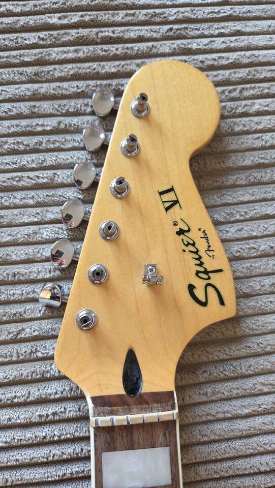 Squier Classic Vibe Bass VI Originalhals, mit anderem Saitenniederhalter. Der Hals stammt von einem dieser etwa-430€-Squier-Bässe.