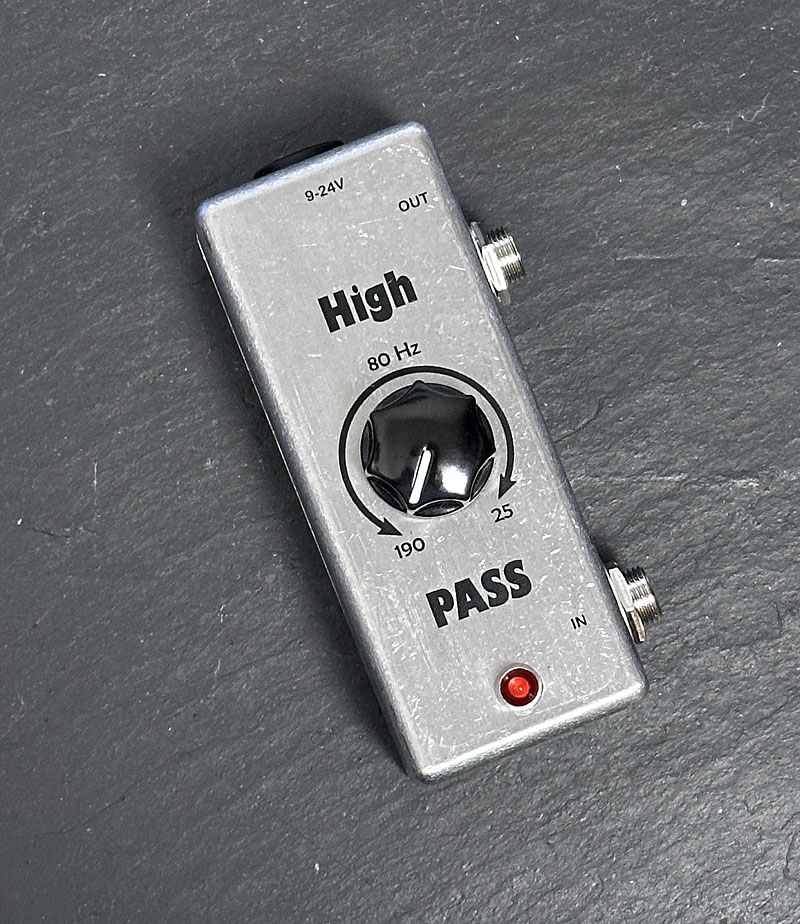 Regelbares High-Pass Filter zweiter Ordnung (-12dB/Okt.). Die Grenzfrequenz kann stufenlos zwischen 25 Hz und 190 Hz eingestellt werden.