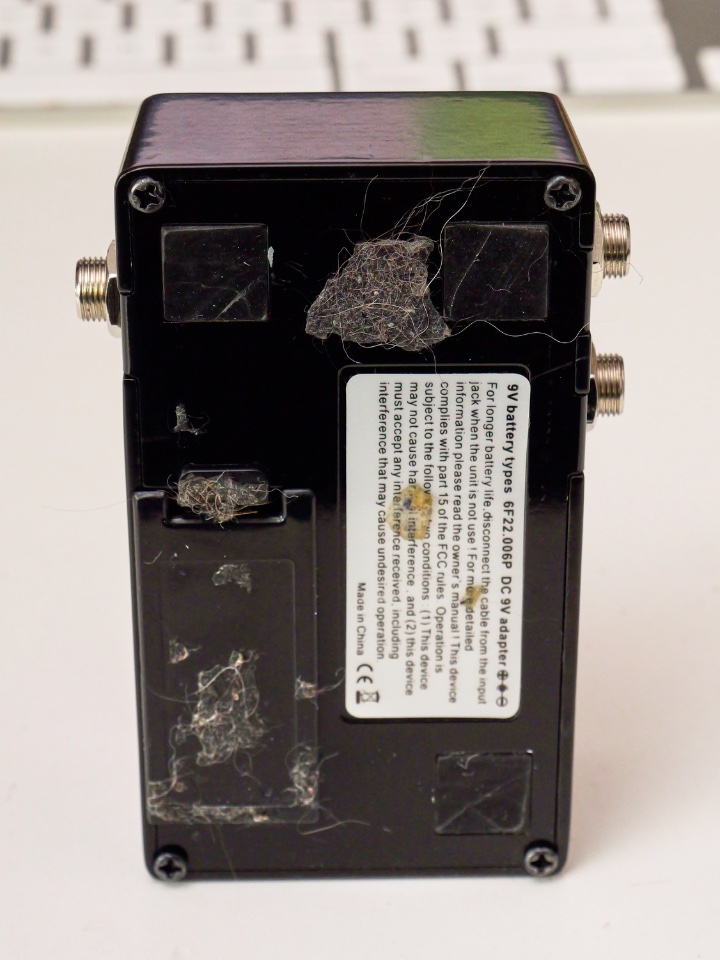Der Tuner funktioniert, hat eine leichte Druckstelle in der Displayfolie und Reste von Klett unten drunter.