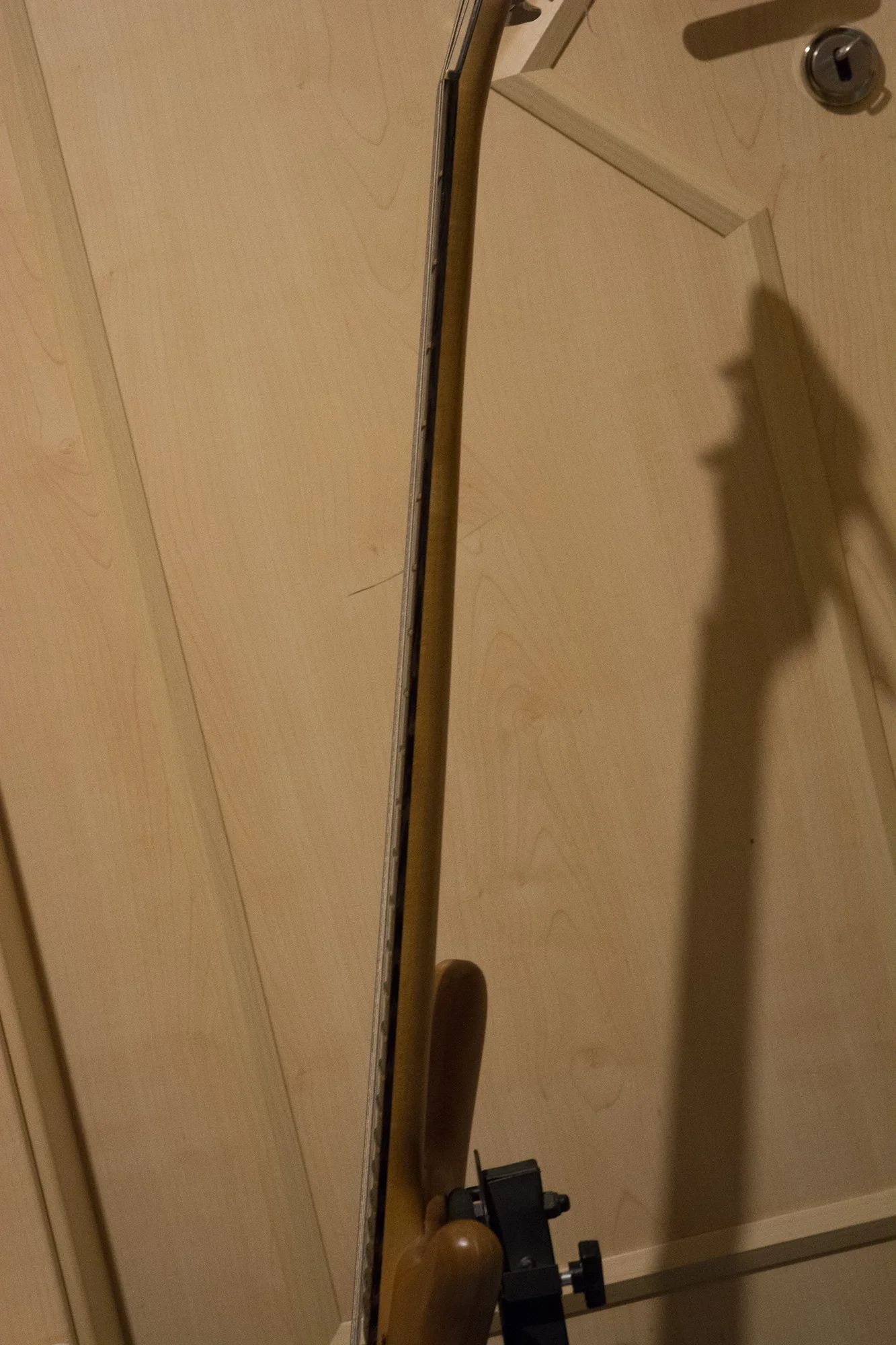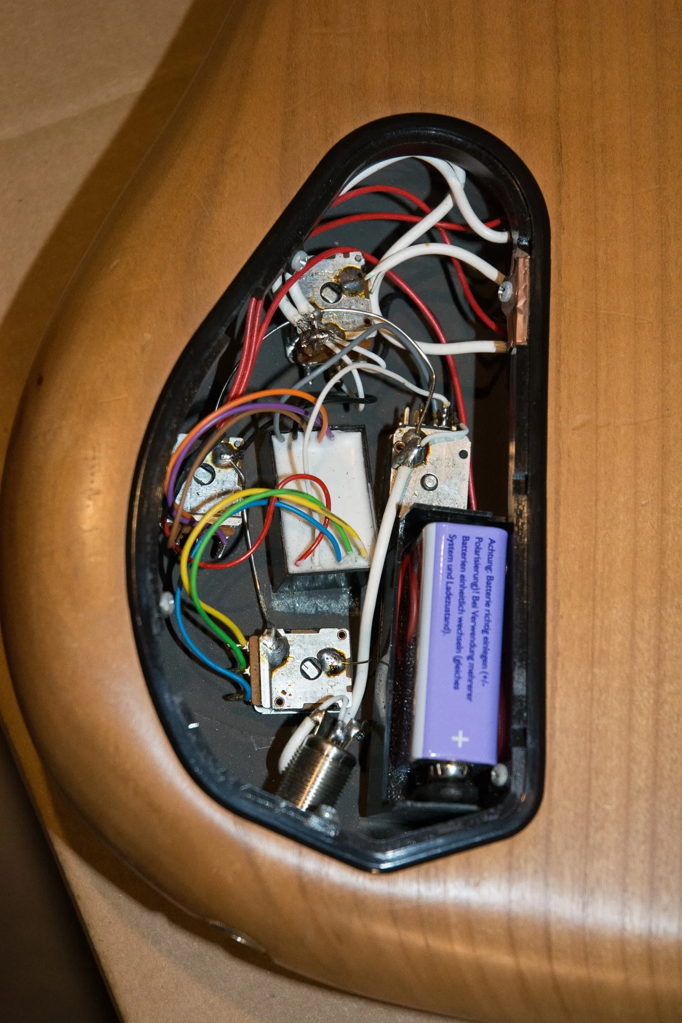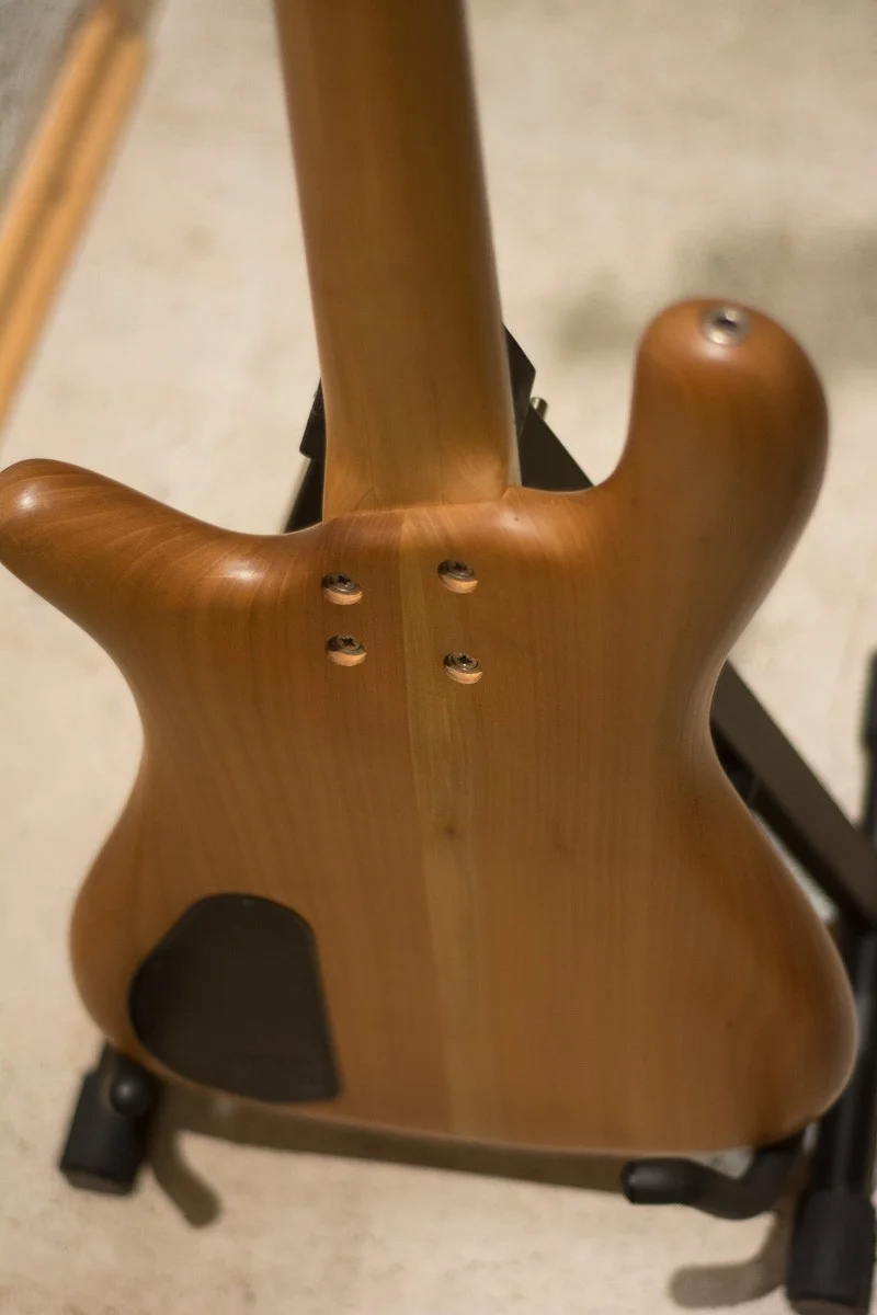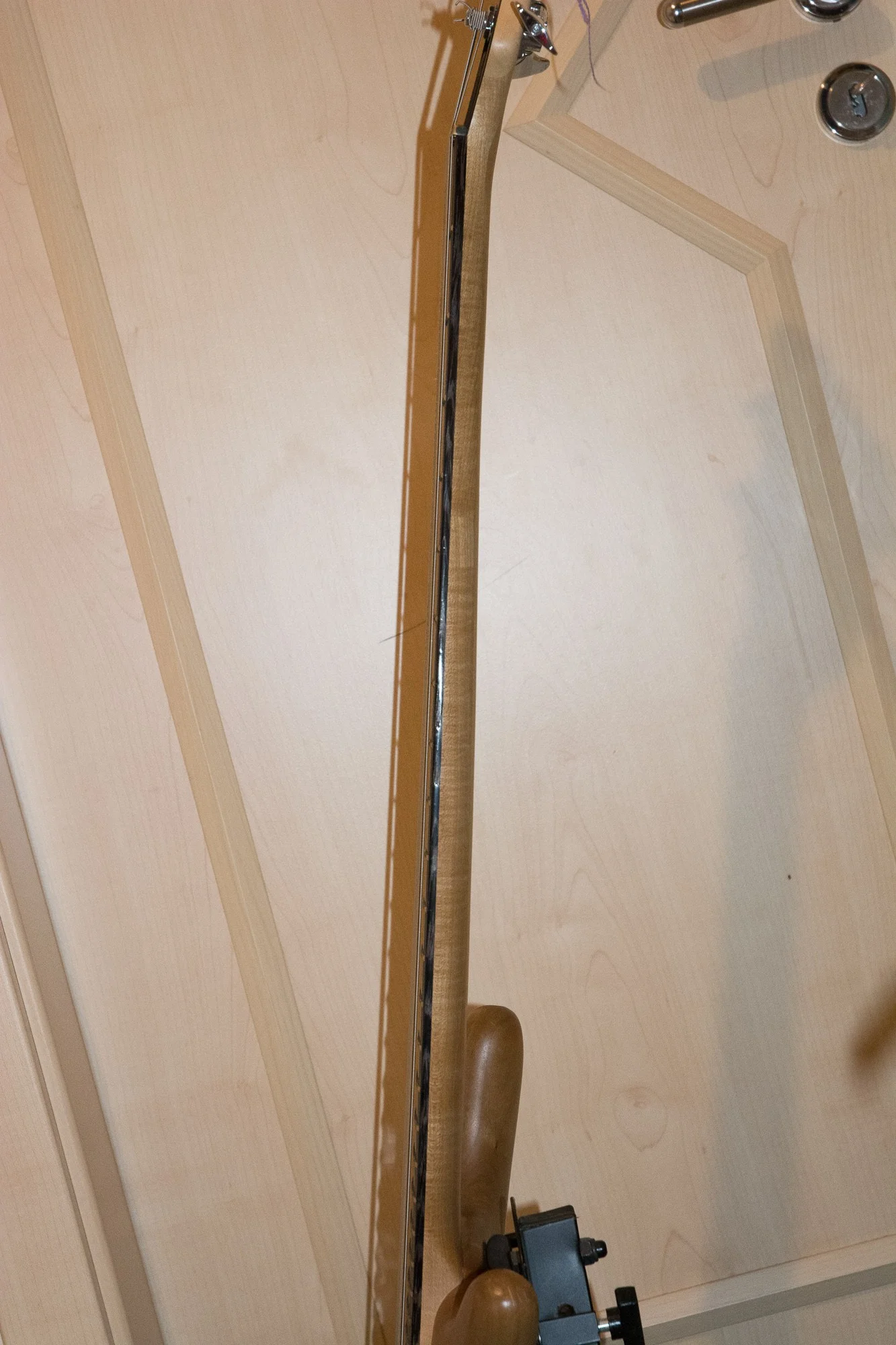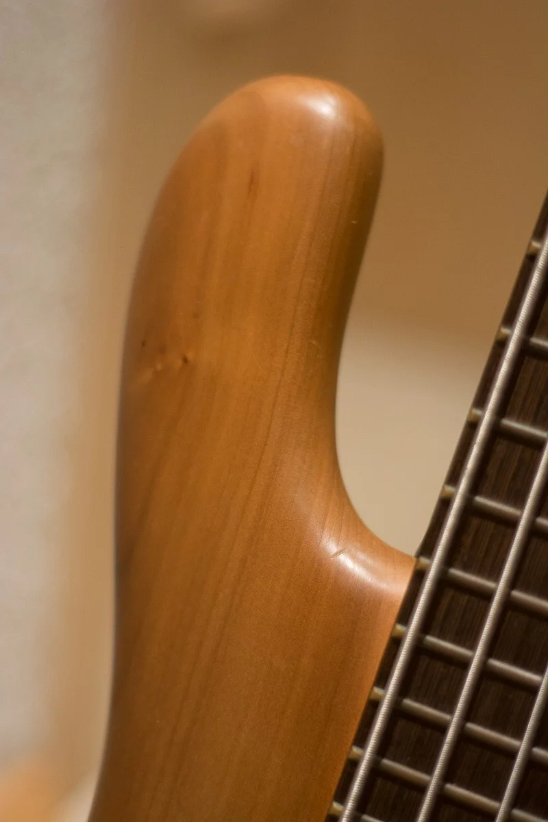 Das Instrument ist 100% funktionsfähig. Der Body ist Kirsche Natur gewachst. Der Hals müsste Ahorn mit Wenge Griffbrett sein.