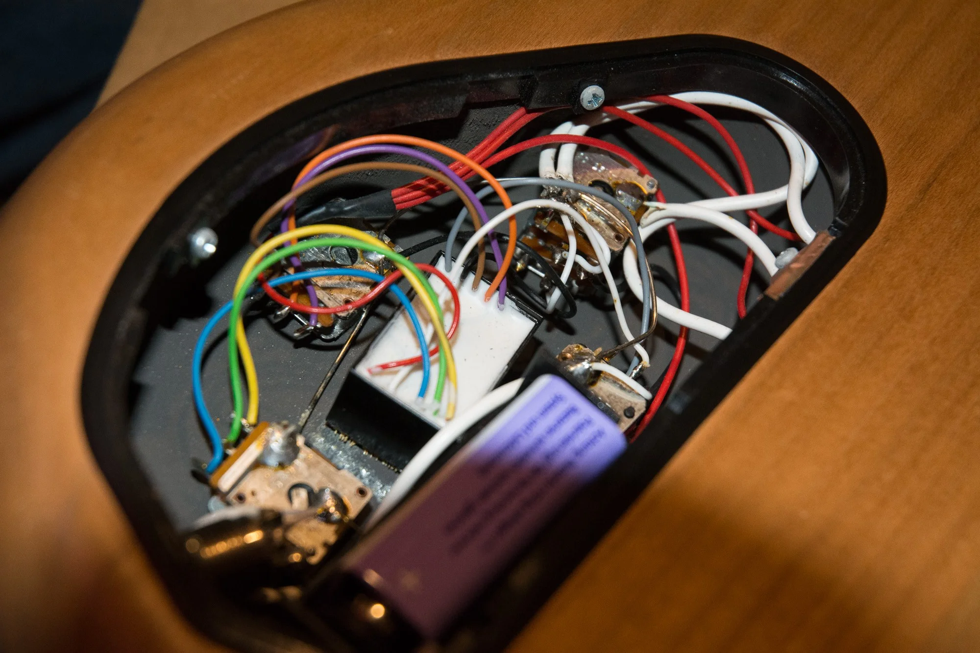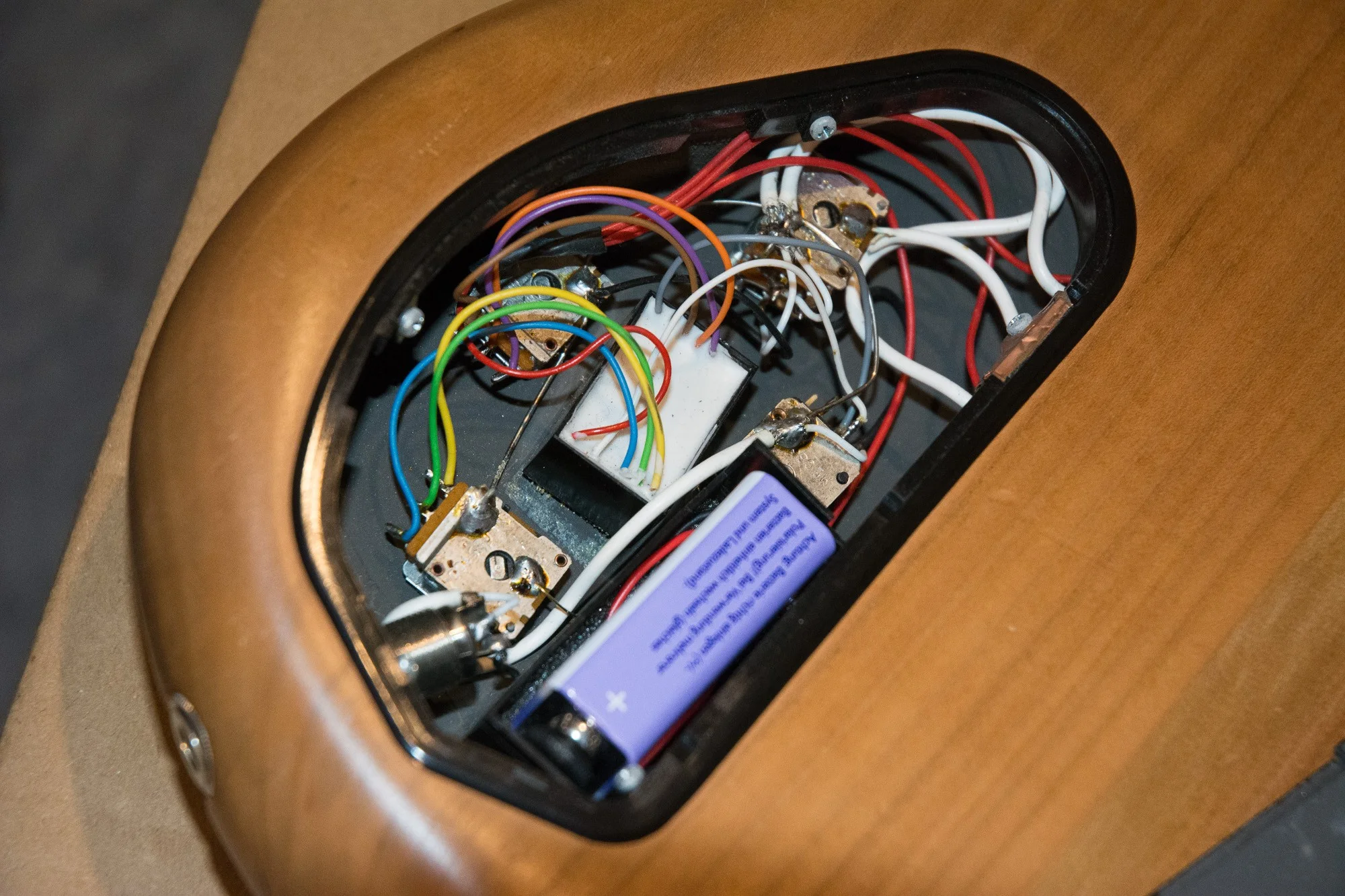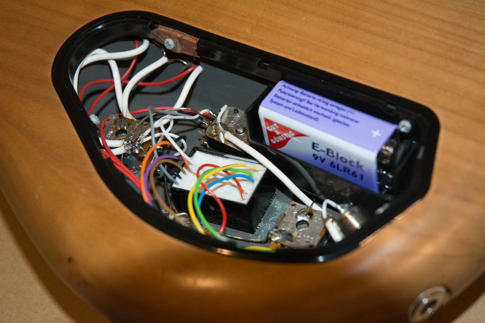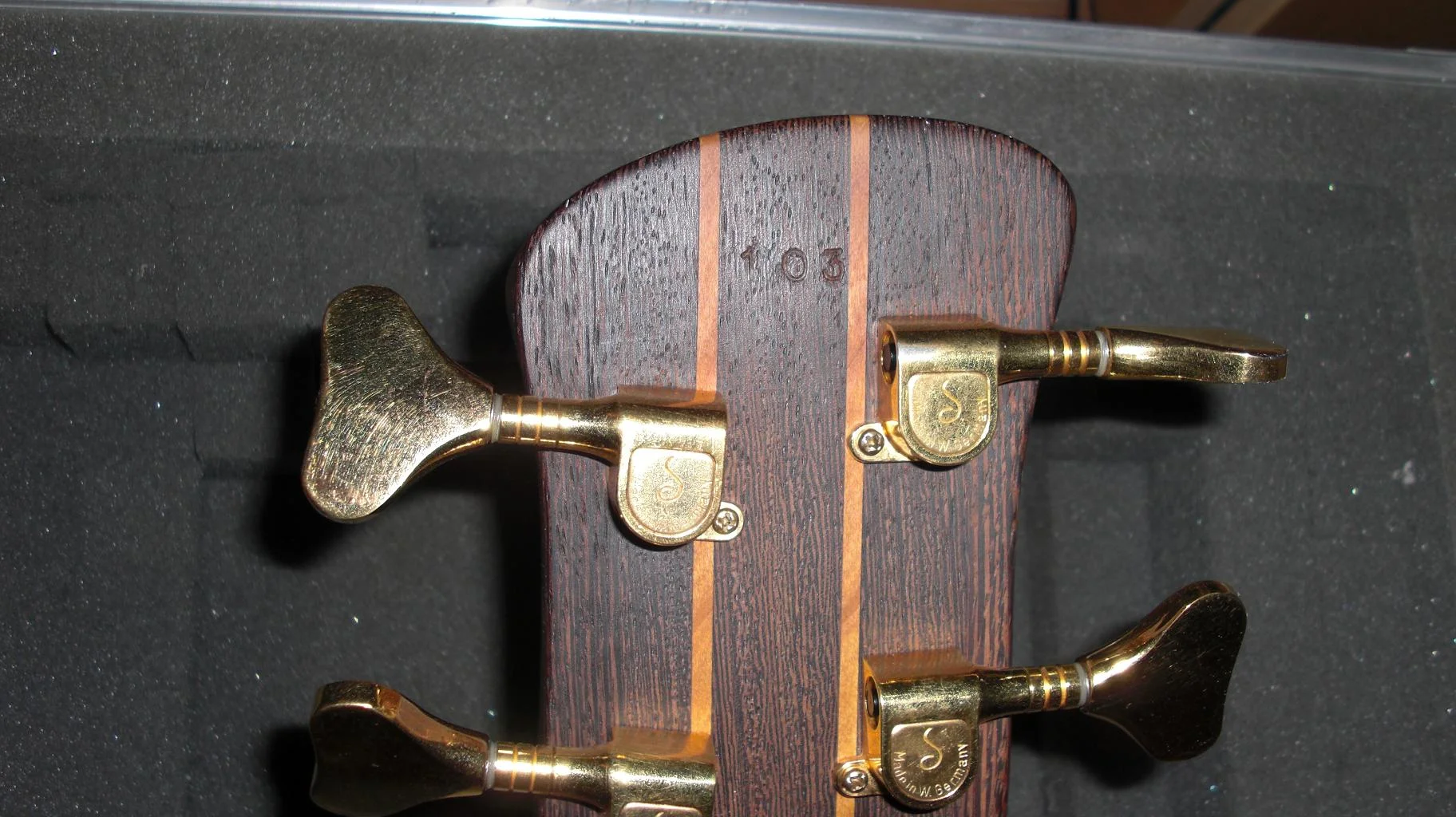 Das Instrument ist 100% funktionsfähig. Der Body ist Kirsche Natur gewachst. Der Hals müsste Ahorn mit Wenge Griffbrett sein.