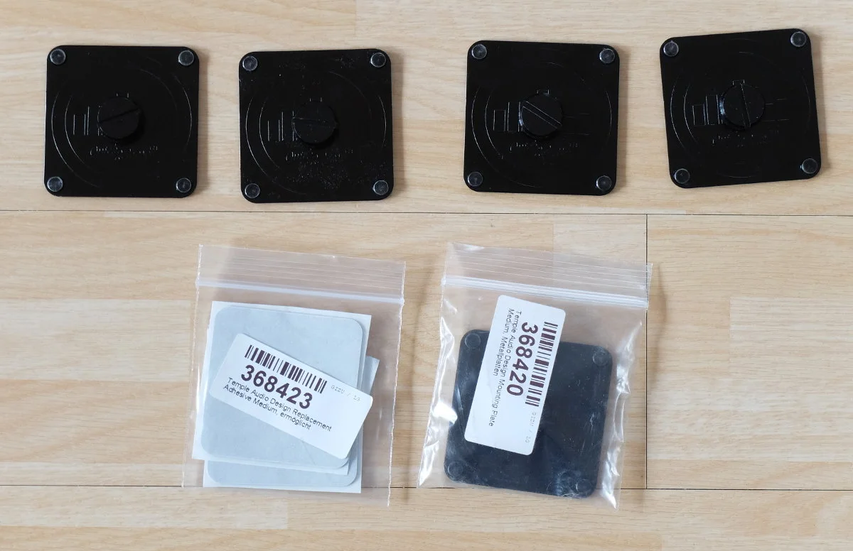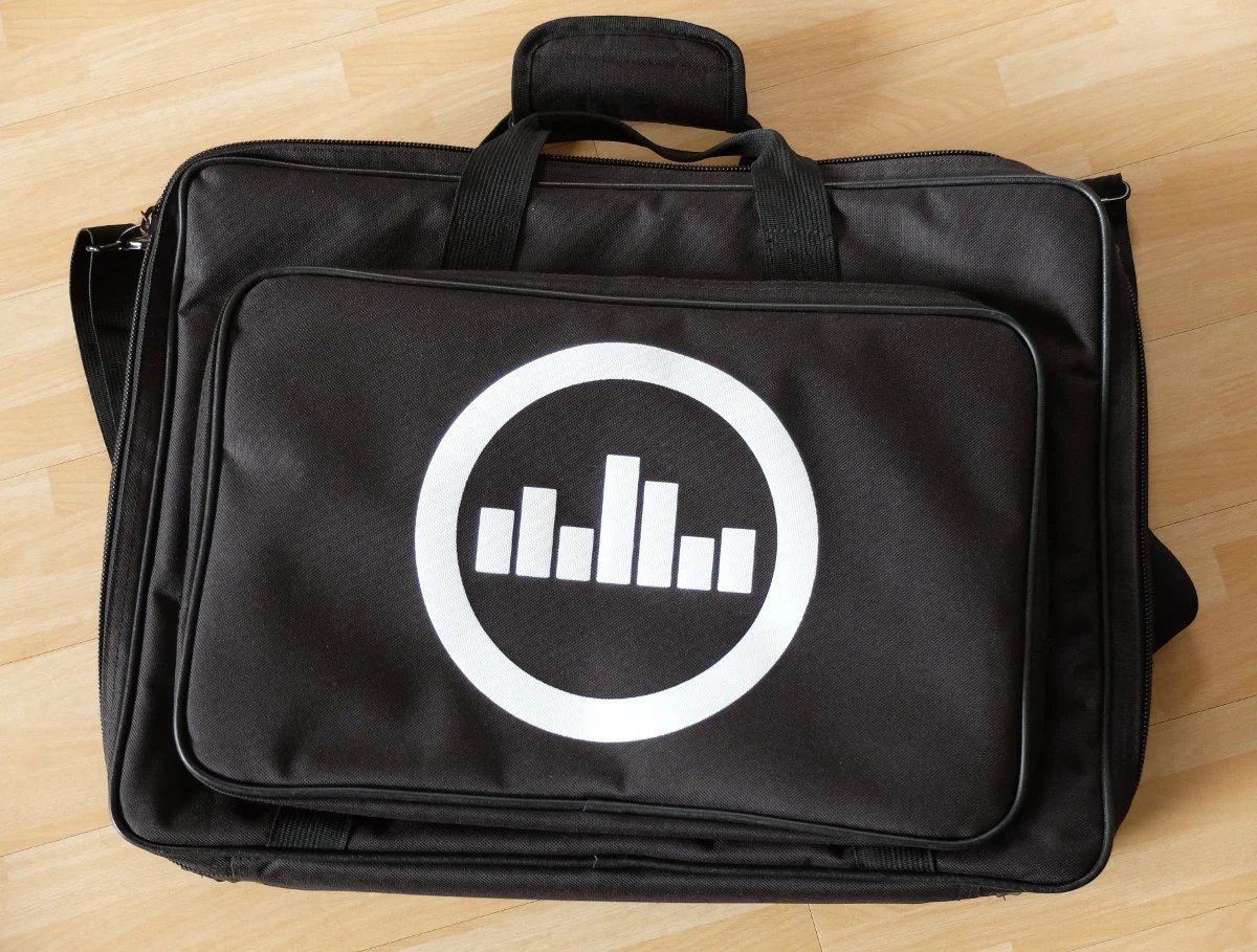 Inklusive Gigbag und fünf Mounting Plates Größe medium. Vier Plates sind gebraucht, eine ist (durch unsachgemäßes Entfernen meinerseits...) leicht verbogen, die anderen drei sind einwandfrei. Eine Plate ist noch unbenutzt, es sind auch noch zwei unbenutzte Klebepads dabei.