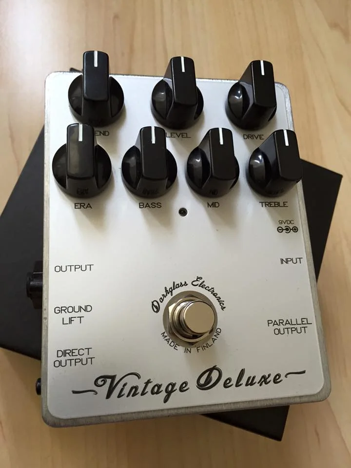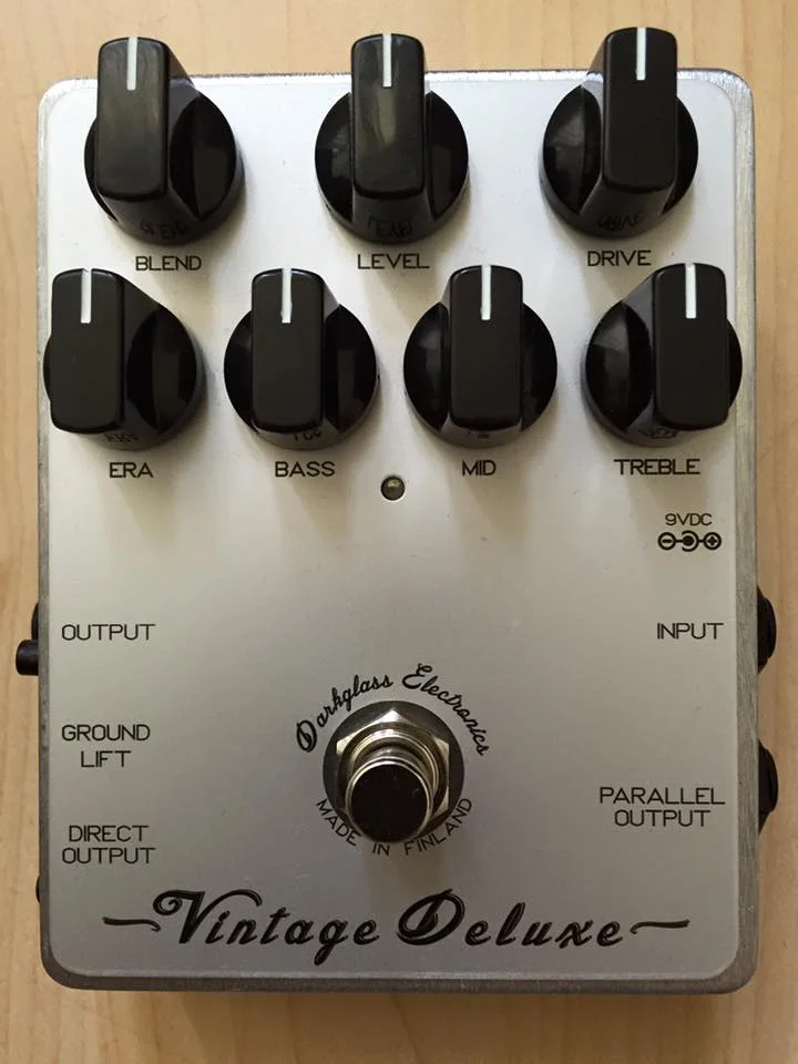 - Regler für Blend, Level, Drive, Era, Bass, Mid, Treble