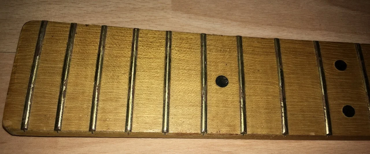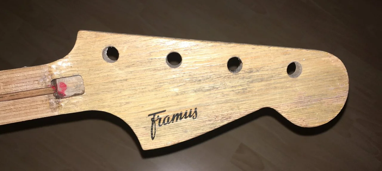 hätte hier mal einen Sonderfall und bräuchte eure Empfehlung. Ich habe hier einen sehr alten Framus Hals bei dem sich die Verleimung löst (Riss an der Kopfplatte und im 12/14 Bund. Wurde wohl lange sehr schlecht gelagert).