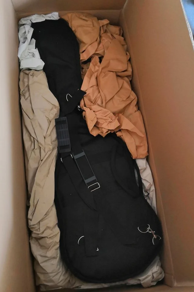 Mensch, was habe ich geschwitzt, bis ich das Instrument wohlbehalten in die Finger bekommen habe. Verkäufer hat es in Softcase und einem stabilen Doppelwellpapp-Karton verschickt. Puh.....Naja, nun woll'n wir ihn natürlich noch ausgepackt sehen...Da mache ich was mutiges, kaufe ungesehen über eBay Kleinanzeigen einen Bass zum Versand und stolpere auf den Bass wartend dann über diesen Thread.Mensch, was habe ich geschwitzt, bis ich das Instrument wohlbehalten in die Finger bekommen habe. Verkäufer hat es in Softcase und einem stabilen Doppelwellpapp-Karton verschickt. Puh.....