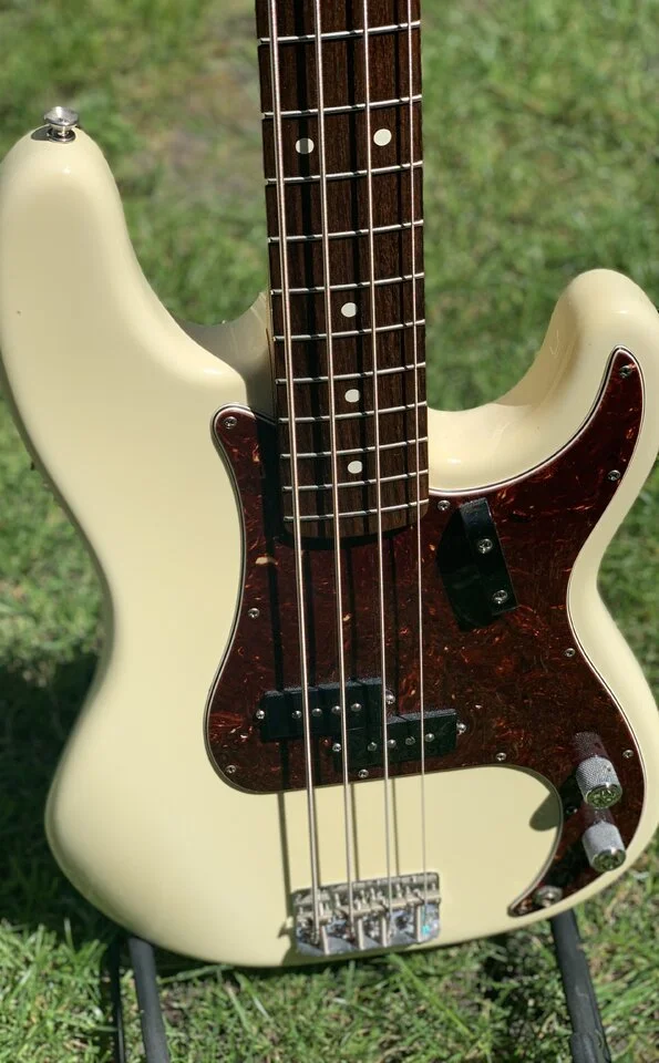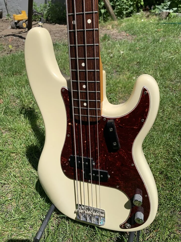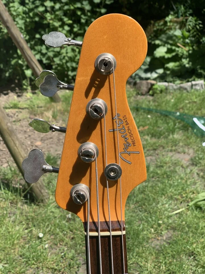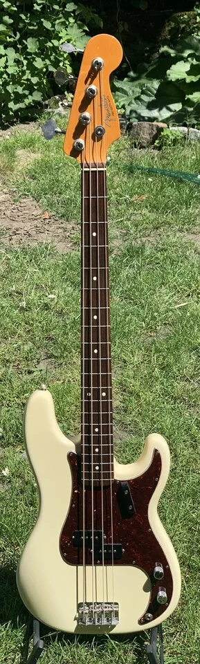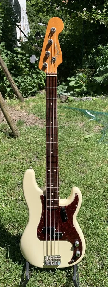 Fender AVRI Preci 62/63er aus den 2000nuller Jahren, weiß in gutem Zustand mit den entsprechenden Nitro Spielspuren. Inkl. Koffer und dem Fender Pipapo. VHB 1950€