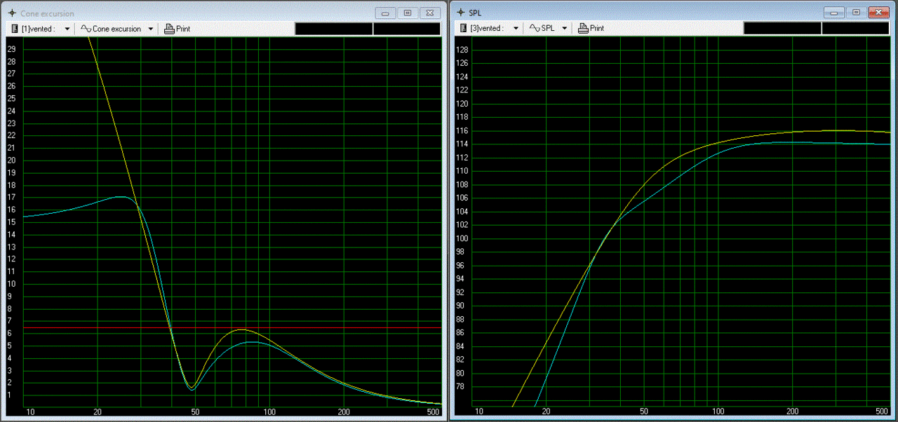 Bezüglich X-MAX schaue ich, dass die 40Hz noch im Bereich der maximalen Membranauslenkung liegen.