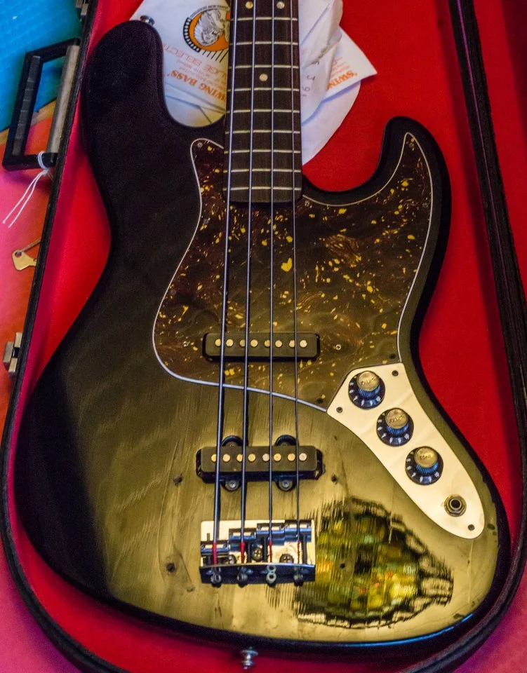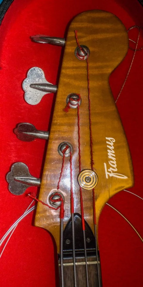 Ja, da müsste man mal ran: ich vermute mal, dass die elektrischen Bauteile über die Jahre der Kofferhaft stark gelitten haben. Es klingt alles etwas dumpf, trotz relativ frischer Saiten. Da könnte man vermutlich was dran ändern, da es aber immer noch der Bass meines Vaters ist, will ich da nicht dran herumdoktern. Im Laufe des Jahres sollte er wieder Flatwounds bekommen, in der Hoffnung, dass er auch wieder anfängt. Bisherige Versuche ihn zu animieren (u.a. Verstärker geschenkt…) scheiterten. Bisher ist das leider nicht auf viel Interesse gestoßen...