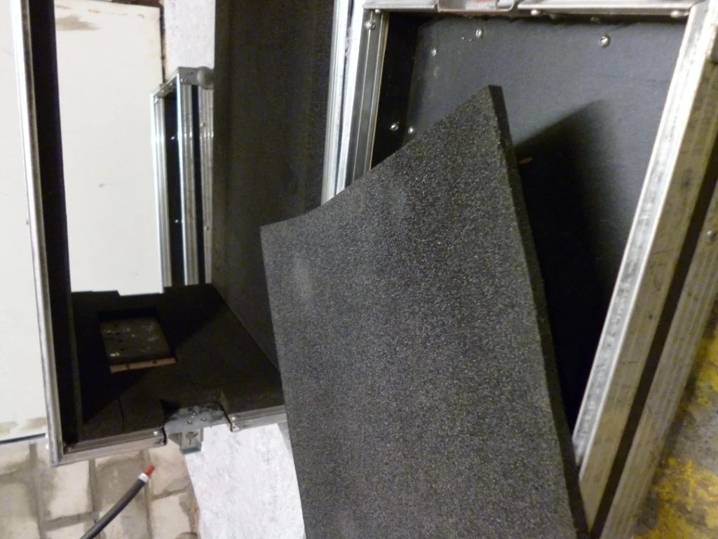 Hier trifft es ein Transportcase, in dem ein offenes Rack mit 3 HE untergebracht war (dieses), darin befand sich mein Tech21 Landmark 600 (jenes).