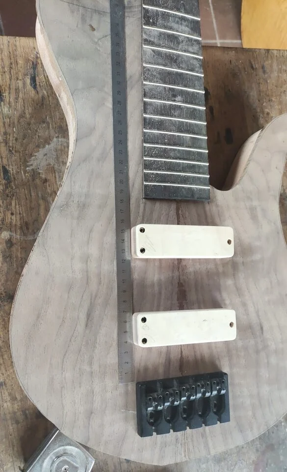 Von Holzauswahl, Halsprofil, Pickups-Position, Elektronik, Position der Knöppe, Inlays, Ramp... Über alles wurde ausführlich gesprochen (per WhatsApp) und ich hatte die letzte Entscheidung. Vor wichtigen Schritten hat er sich immer gemeldet und ich konnte eingreifen oder absegnen.