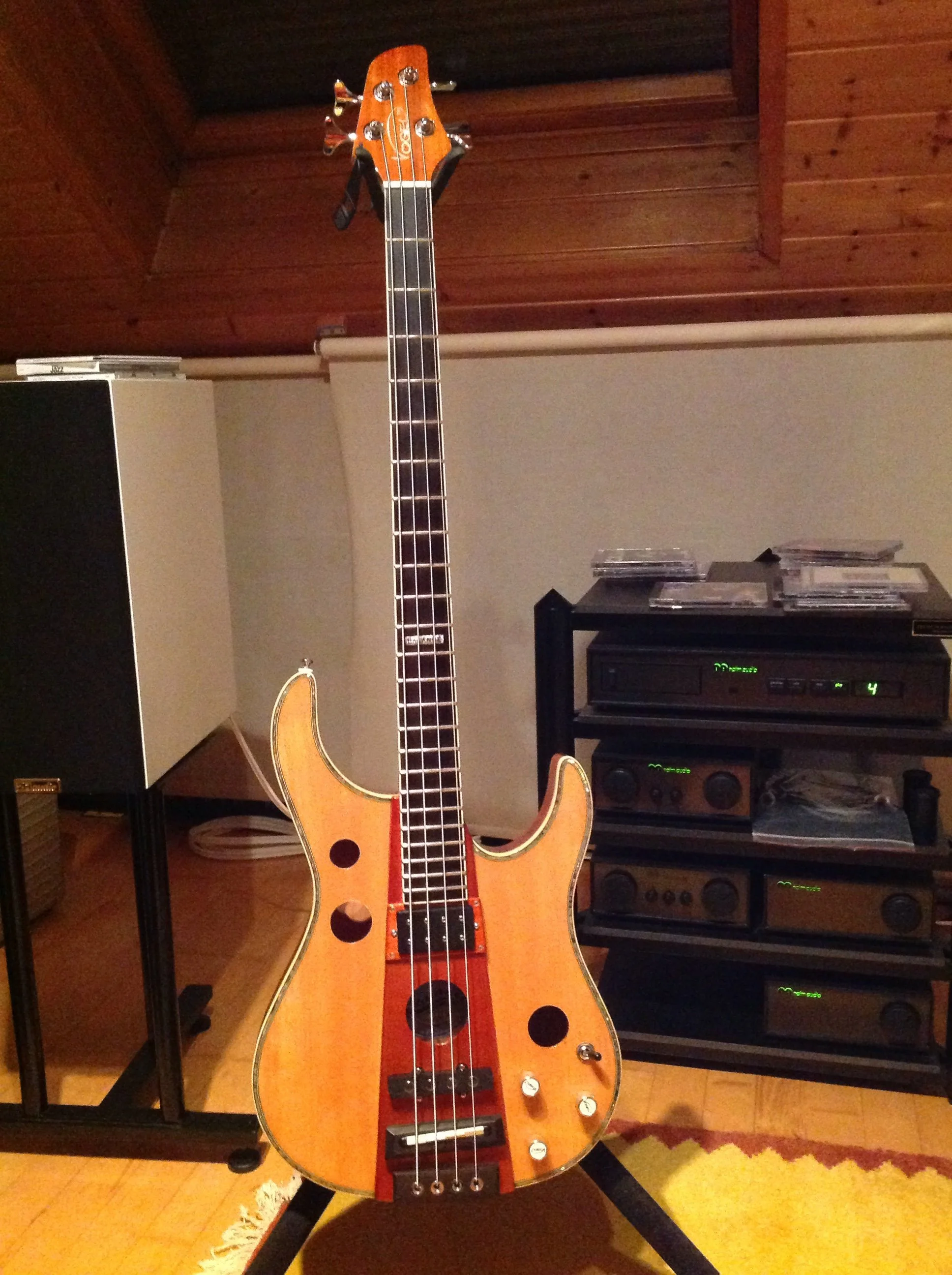Sehr hochwertiger Halbakustikbass Handmade by Johannes Vogel. Ausgefräster Mahagonikorpus mit Fichtendecke und eingeleitetem Hals. 1 Humbucker am Hals, 1 SC am Steg und Piezo mit 3 Band EQ. Alles komplett mischbar. Sehr flexibler Bass, von Rock über Jazz und Ballade geht alles. Wunderschöne Ausführung und Top Zustand. Sehr seltenes Instrument! Preis 899€ .Weiter Bilder gerne auf Anforderung per Mail.