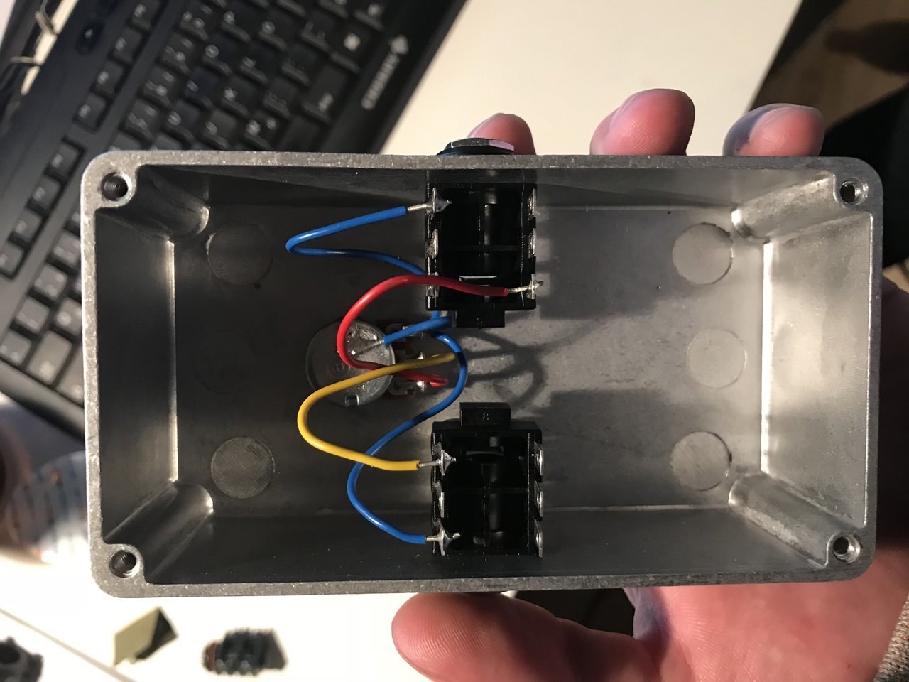 Welche Farbe vom Draht meinst?Ähm, ist der Masseanschluss an der oberen Klinke nicht an der falschen Seite? Oder ist da noch eine nicht-sichtbare Brücke?