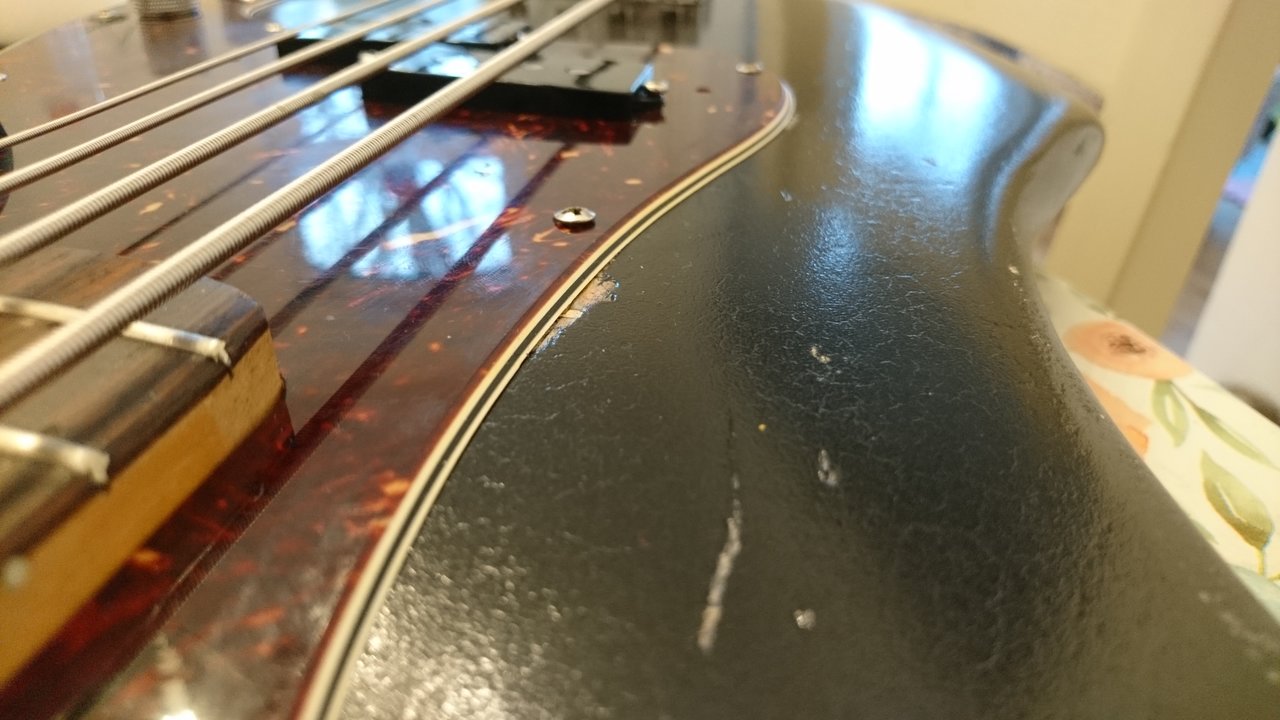 Du hast es, die 60s Bässe sind ganz anders von der Alterung der Lacke als 70s..... Meinen Recherchen nach hubbeln, riefen und porösen und bröseln die 60 Bässe eher und ab CBS gibts Cracks, längere Riefen etc.Cool. Kein Siebziger, eher ein Sechziger![]()