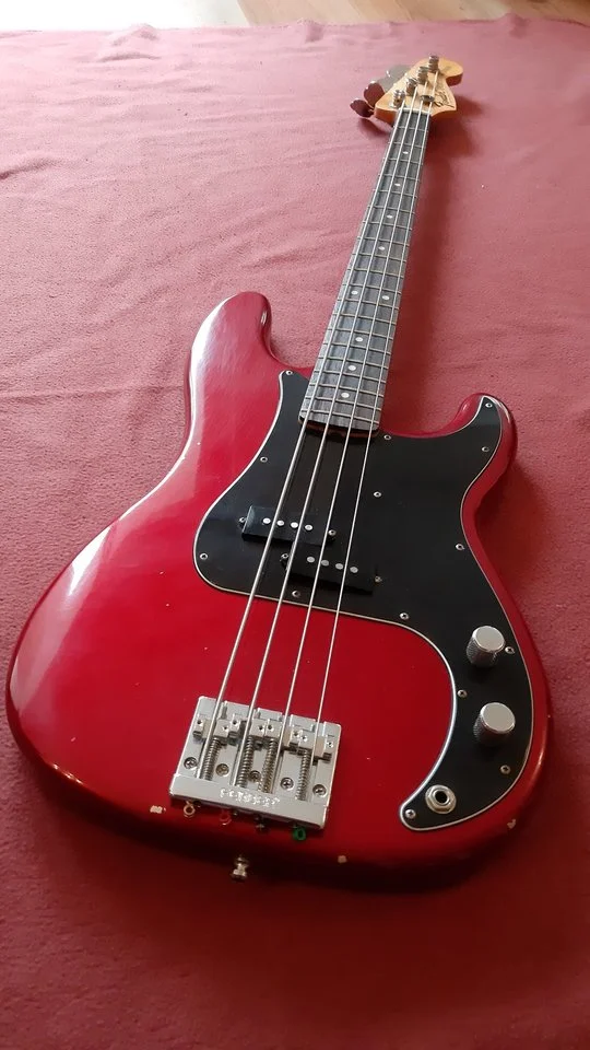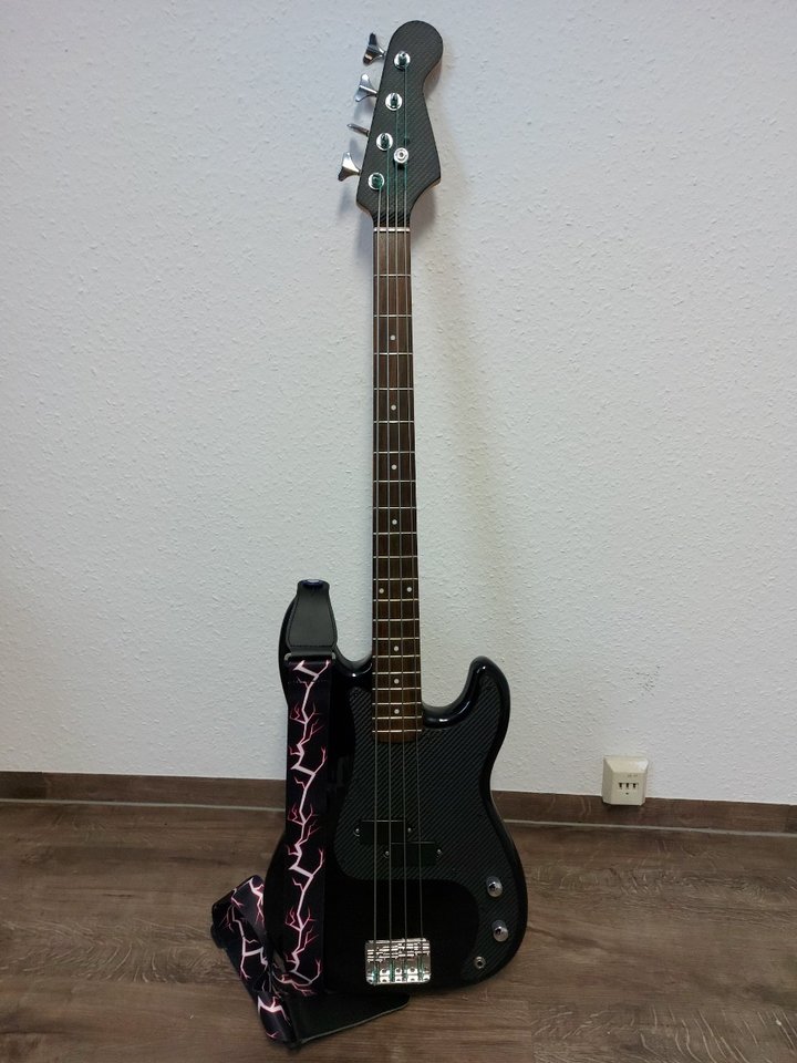 Um dem Bass etwas auf zu peppen, habe ich ein Blutrotes Turtoise Pickguard geschnitzt .
