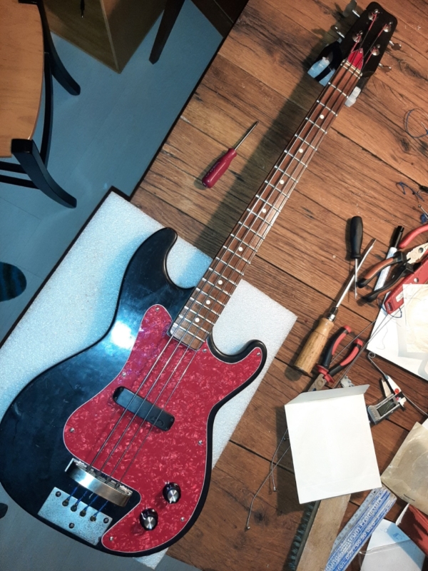 Falls jemand Interesse an dem Gerät hat.....PM....Das Original Pickgurd war aus mit Ledermuster geprägter Pappe. leider ziemlich Dick mit Ölfarbe gestrichen . Da es ebenfalls schwarz ist, gehe ich davon aus, das