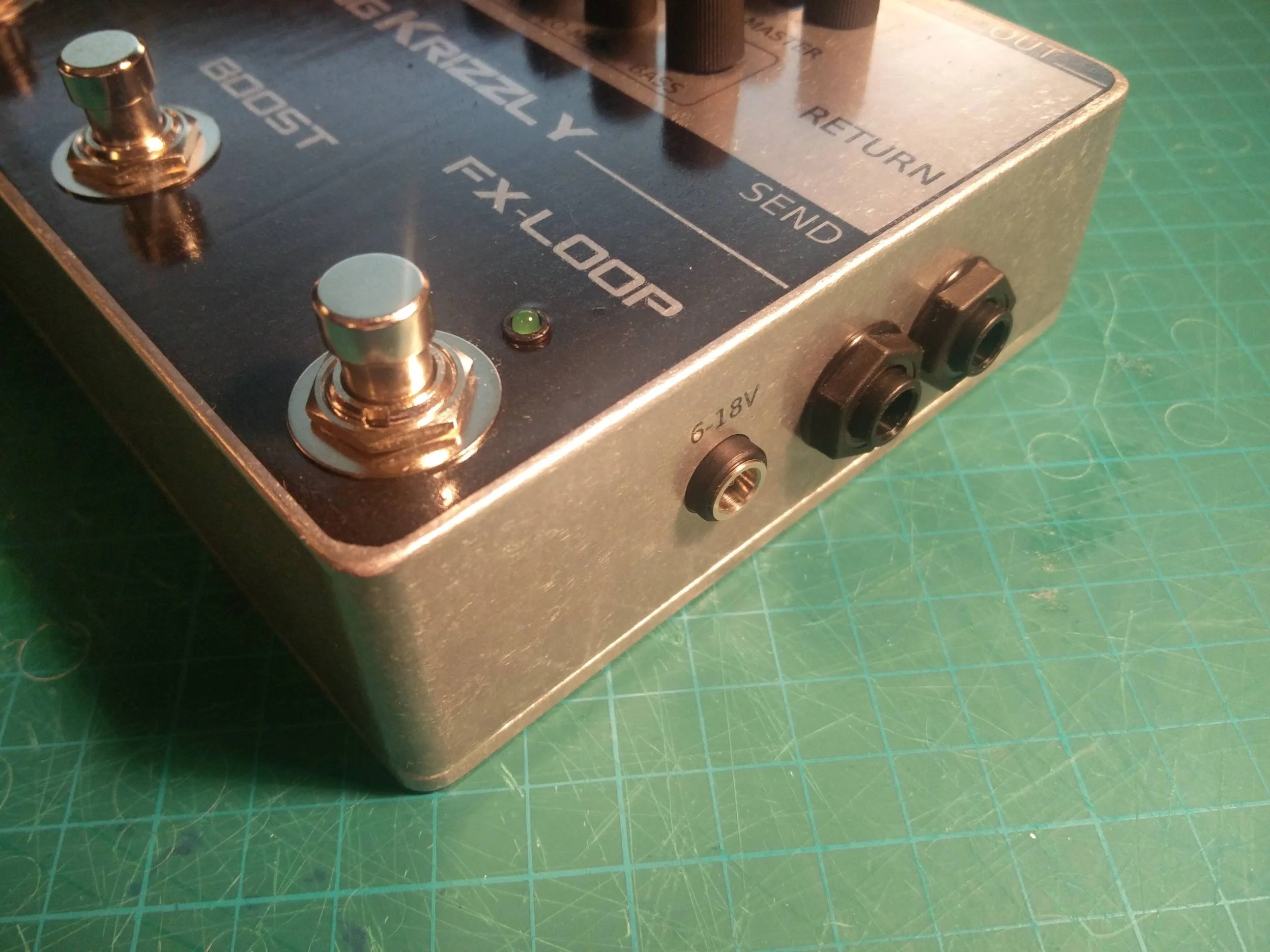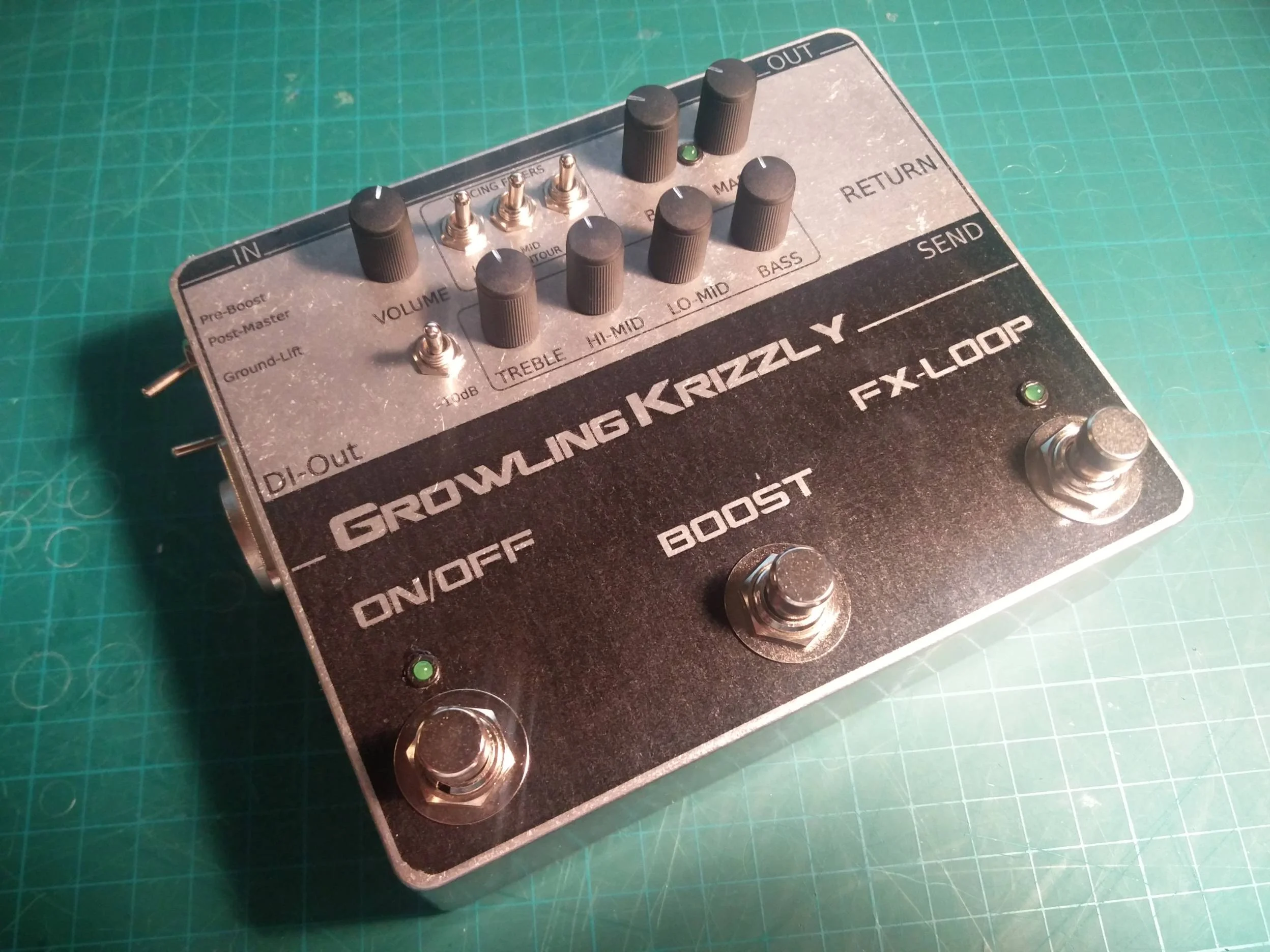 Das lässt den Sound schön komprimiert und kompakt klingen.Der Mid Contour boostet die Bässe und die Höhen, und Cutted die Mitten um circa 500Hz herum.